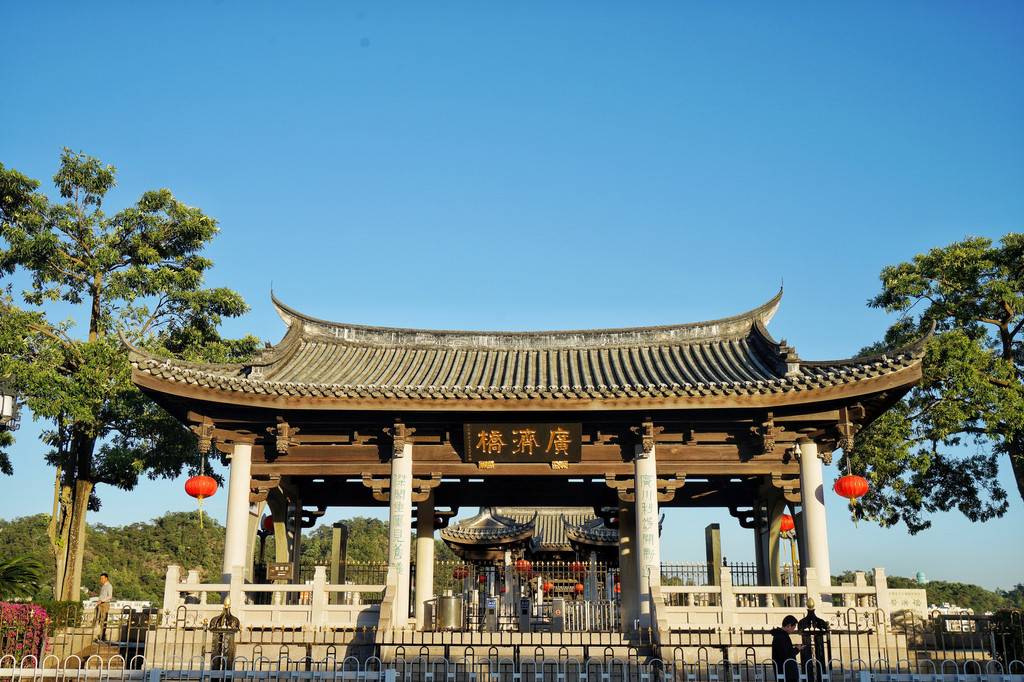 我们就这个断层曾问过潮州本地人,他们有说因为这种设计的拱桥,大型船只没法通过,所以中间留了断层;也有人说,是因为修着修着材料不够了,所以没再修下去,至于具体原因为何,已无从得知。但是关于广济桥的传说,一直都在潮州流传。