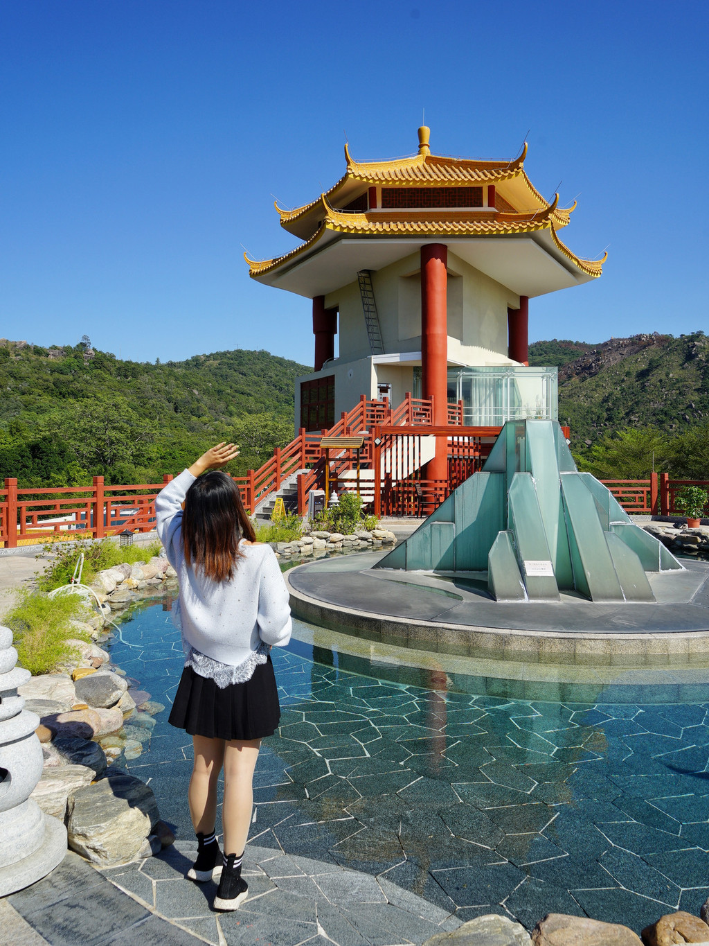 这里有国内首创洞天式空中温泉的温泉山,五层高的人工山地,空间交换复杂,每一层的温泉都是独立而私密的,视野极佳,举目都是葱葱郁郁的山林,在这样的环境里泡温泉,抬眼就是蓝天白云,夜晚还可以看星星,chao浪漫~