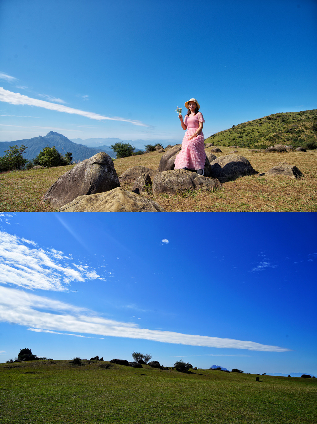 天池旁还有一块草地,与蓝天白云相互辉映,好像古早时候的windows XP桌面,站在草地上的巨石上拍照,好像站在群山之巅,美到爆镜。
