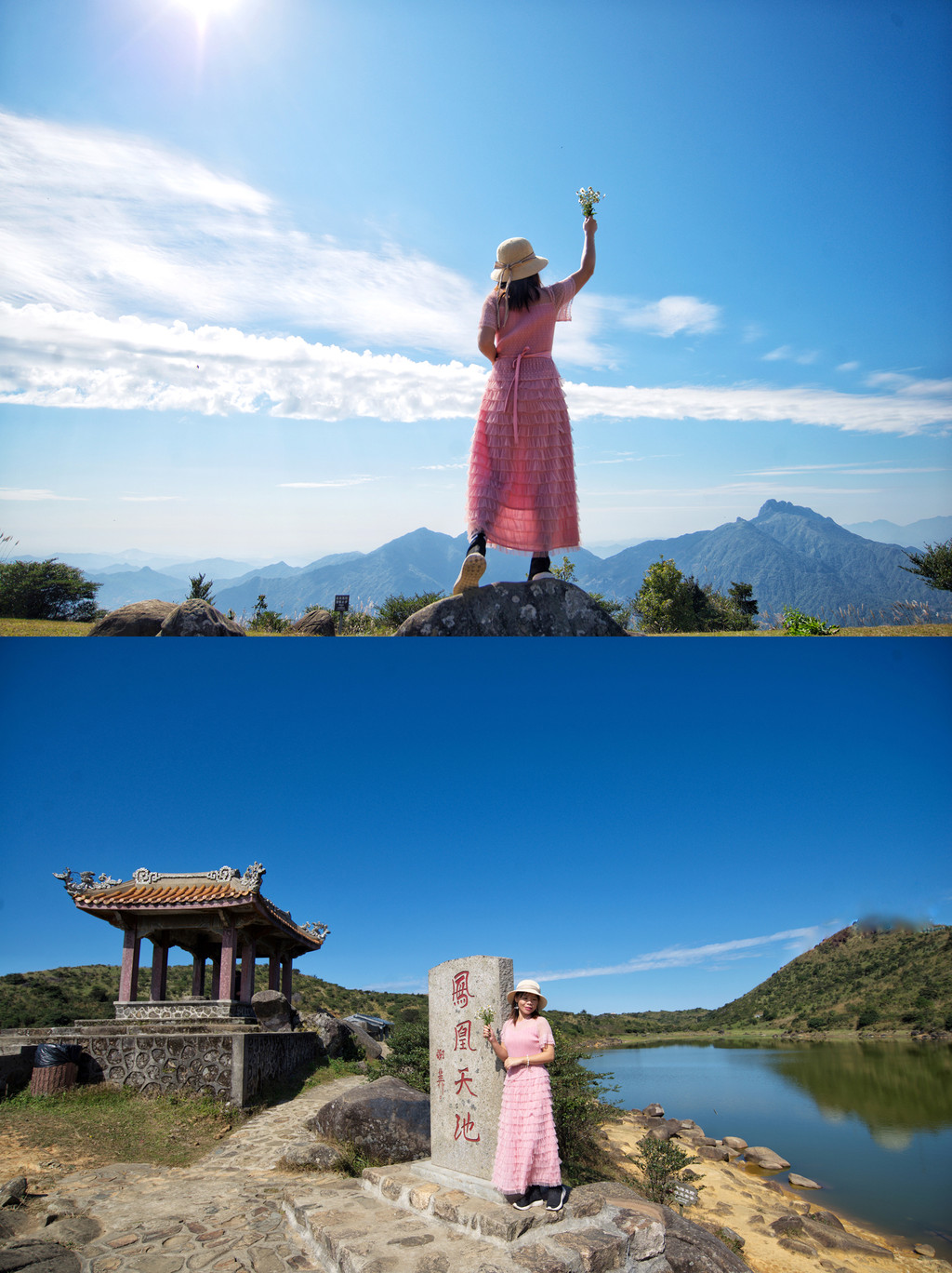 这次我们去了潮安的凤凰镇,开着车绕着山路十八弯,上了凤凰山的第二高峰乌岽山,山顶有一颗明珠-凤凰山天池,据说天池是古代火山口所形成的天然湖泊,所以水面平静如镜,甚美。