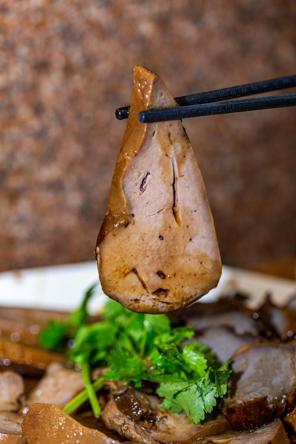鹅肝、鹅肠、鹅头、鹅肉、鹅掌、鹅翅、鹅肾,潮州人对鹅的细分,不亚于牛,每个部位不同的展现,都有不同的Fans,我更喜欢鹅肝&鹅肉,柔嫩、细腻,甜得丝丝入扣,特别击中我心。