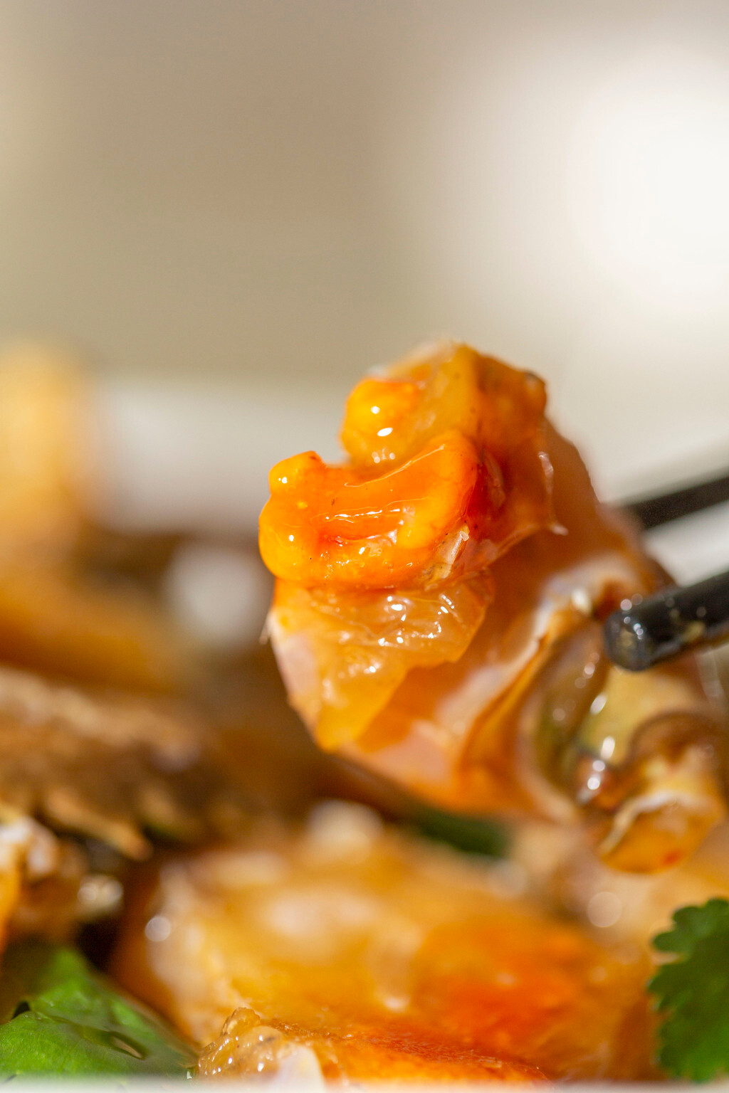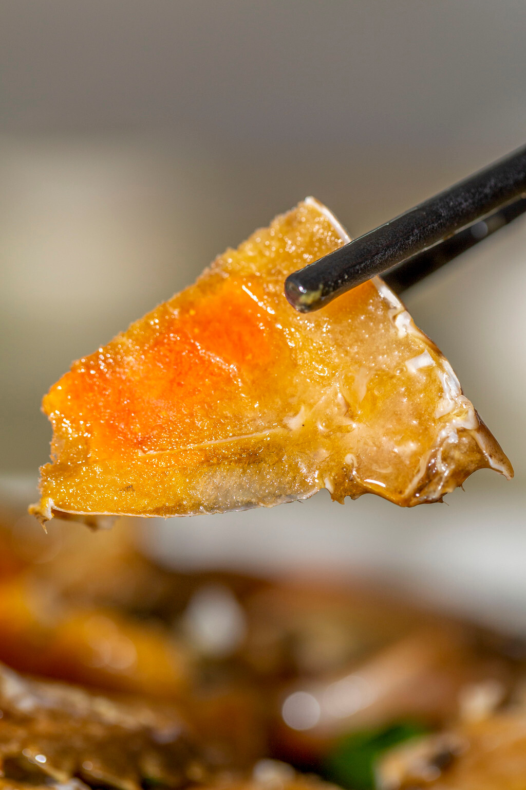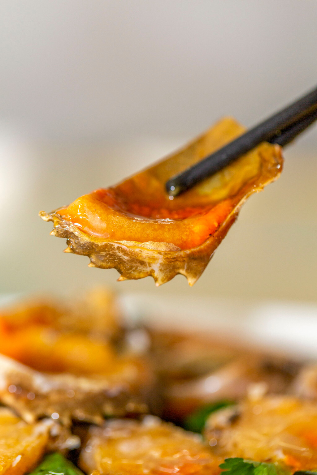 最后隆重登场的是咸膏蟹,也是我记忆深处最难以忘怀的味道,咸膏蟹柔滑如冰激凌,膏脂横溢色泽如咸蛋黄,多种料酒把它的香气逼出,一口就已相当惊艳!没错,它是我一秒就爱上的味道,那一抹冰凉柔滑的口感,值得我不远千里而来!