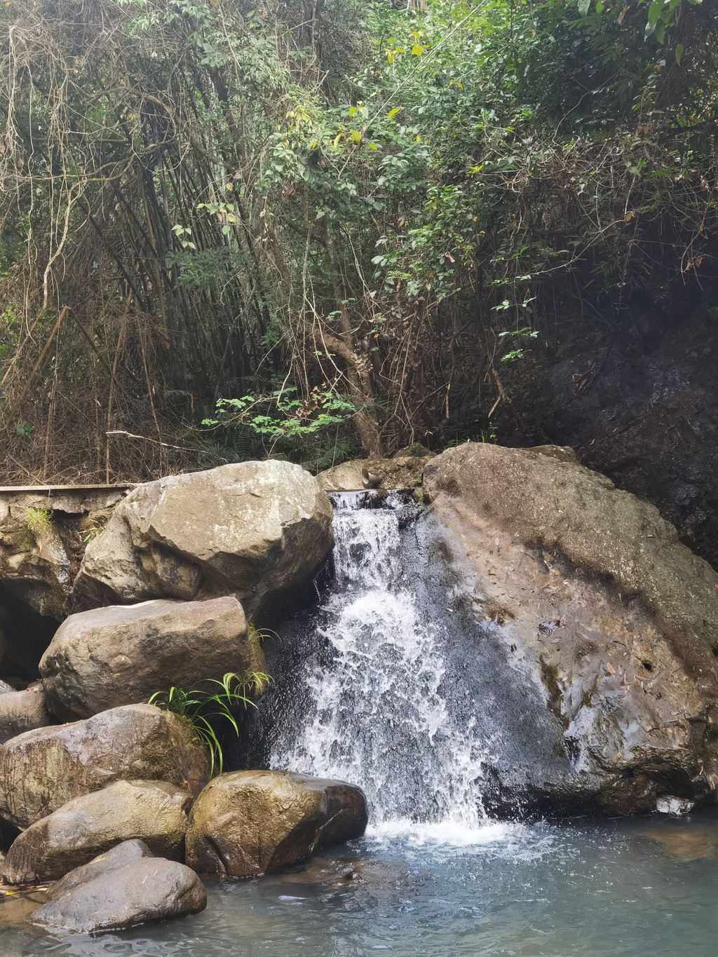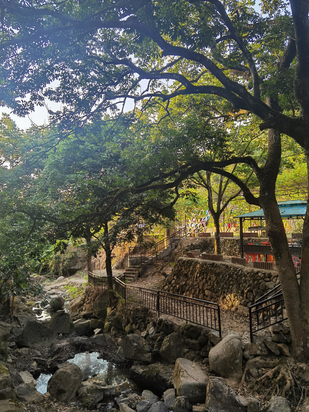 幽峪逸林旅游区藏于深谷之中,六处形态各异的水流瀑布,是潮州人心目中的白月光,迎溪流而上,幽静舒爽,还有猫咪“喵喵”迎客,循声而至竟是茶寮,潮州人喜喝茶,每个休憩的亭子都放置了茶叶与茶具,电源、电热水壶一应俱全,供游客泡茶。