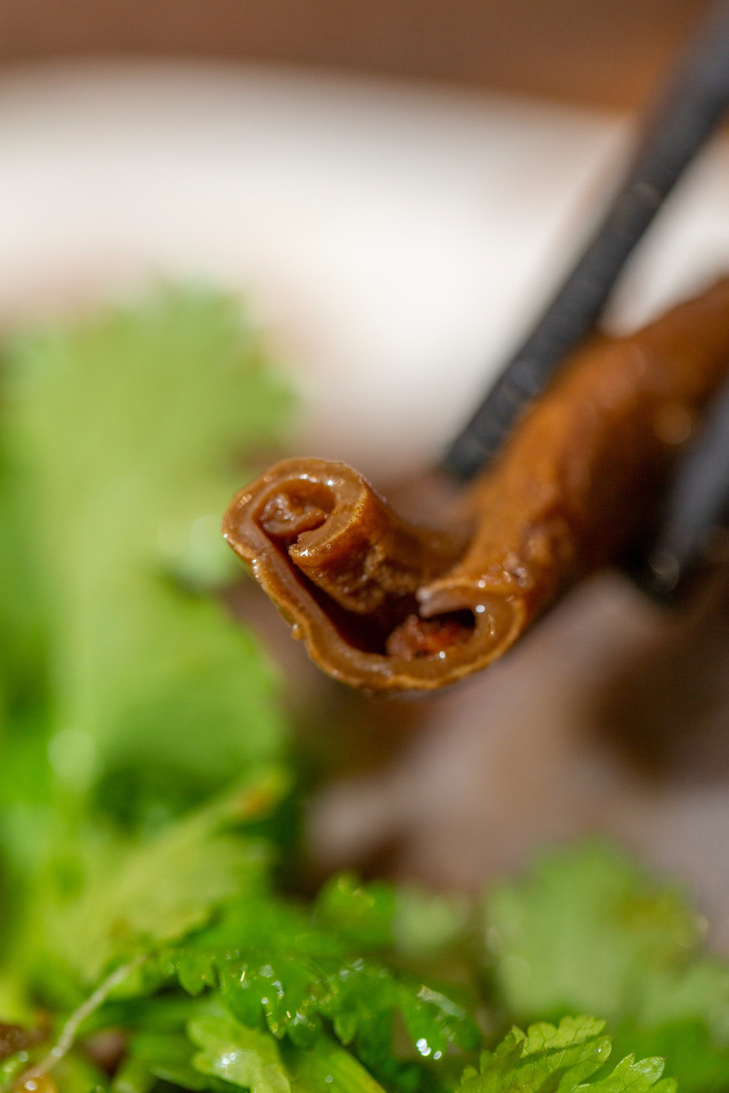 潮州牛肉专在刀工,把牛肉切得均匀透薄,且细分至各个部位:雪花肉、牛舌、牛百叶、吊龙肉、匙柄、吊龙伴、脚趾、五花趾、三花趾、嫩肉、肥牛、胸口朥…8-15秒的涮烫时间,每一口都鲜美无比;配上一口浓浓的甜口沙茶酱,肉汁丰盈,肉香浓郁,令人回味无穷!芥兰正当时,惹味的牛肉+粿条湿炒,肉香、粿条香叠加在一起,这一口,谁不爱?!