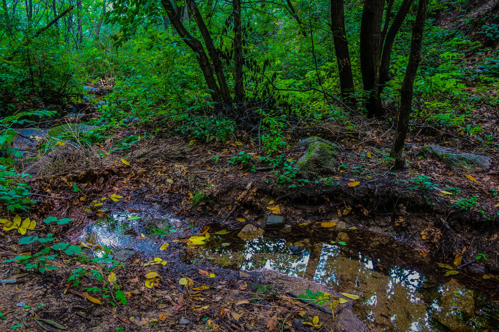 在山谷石群间,也遍布泉水与溪流。干净的绿色,湿润的石头,清透的溪水,我觉得整个世界都清新了。