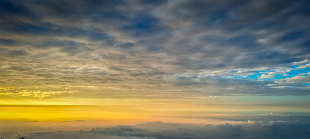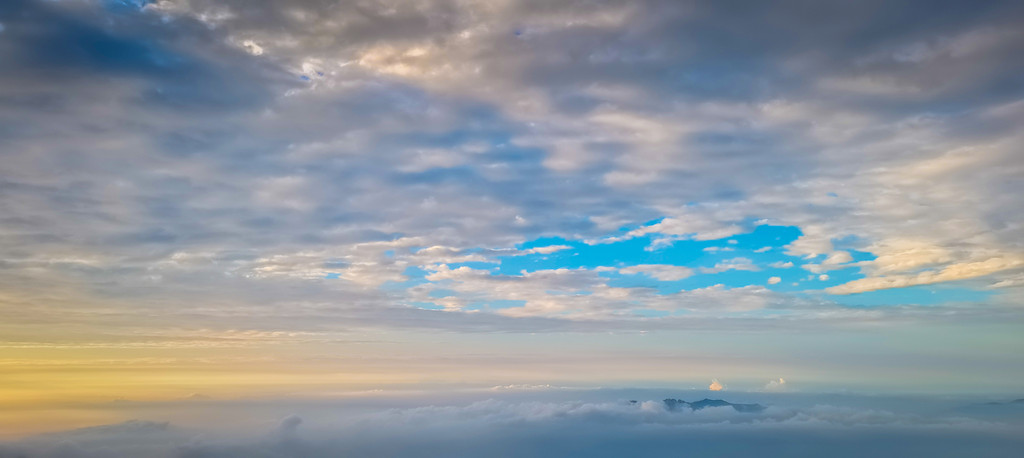 这里的云海不属于那种雾锁山头山锁雾的浓雾,使人喘不过气来,也不是稀疏的让人乏味的薄雾。