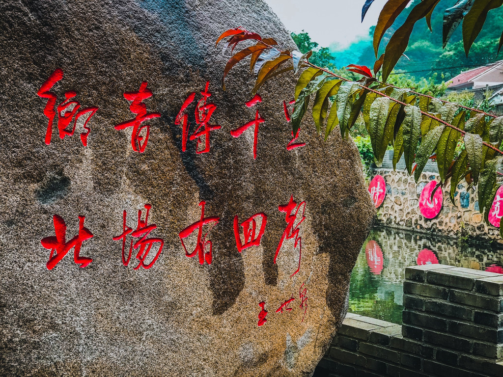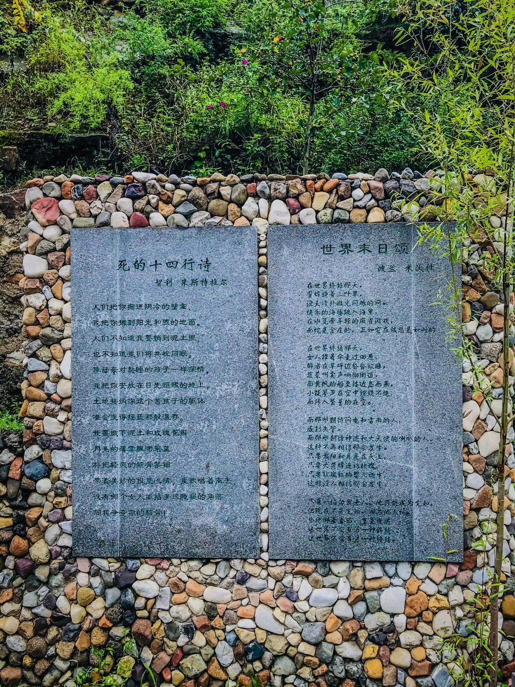 沿着上庄村十里溪沟蜿蜒而上,村里平整的道路两旁,取自溪沟的石料上,镌刻着古今中外百首名诗,以及上庄诗人们的诗歌。随时随地停下脚步,你都能驻足欣赏这些山野间遗落的诗句。