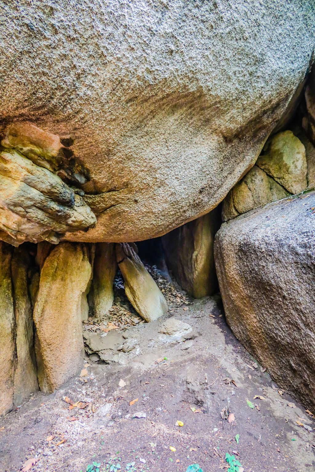 大自然鬼斧神工缔造了奇石谷的灵巧怪石,在树林万岭中沉浮其间,若隐若现。顺着山间小路奔去,山路曲折,蜿蜒盘旋。山林间,有一处巨石形成的夹缝,也是这里有名的打卡点。