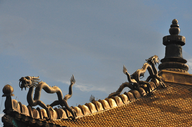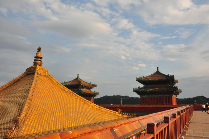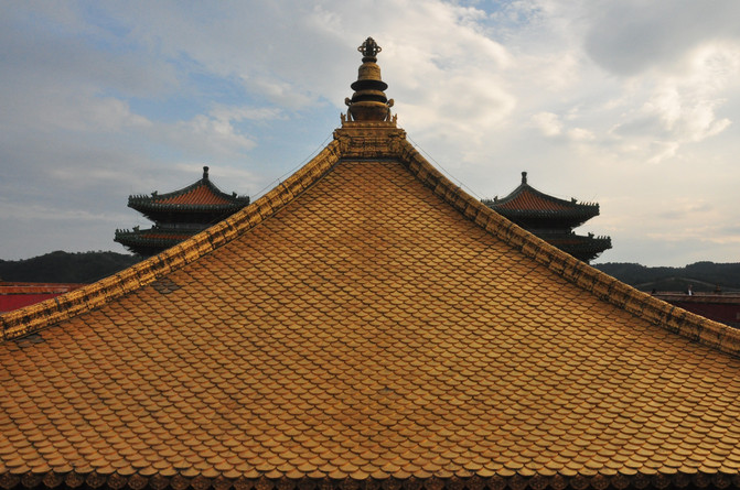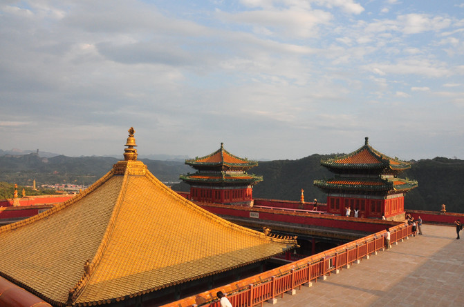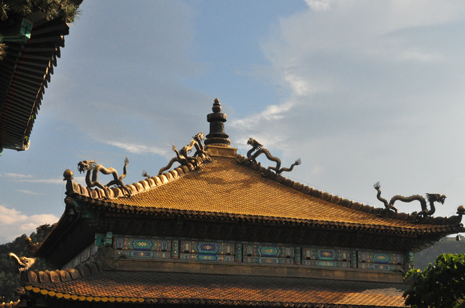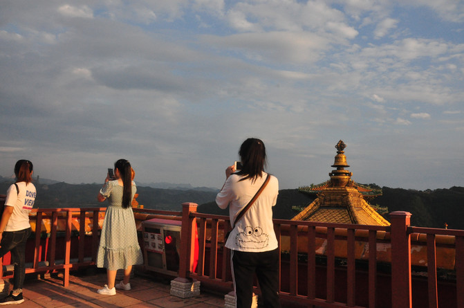 从景区大门走至大红台可以俯瞰金顶,在太阳余晖的照耀下,一片金灿灿的辉煌,呈现在眼前,的确恢弘大气。