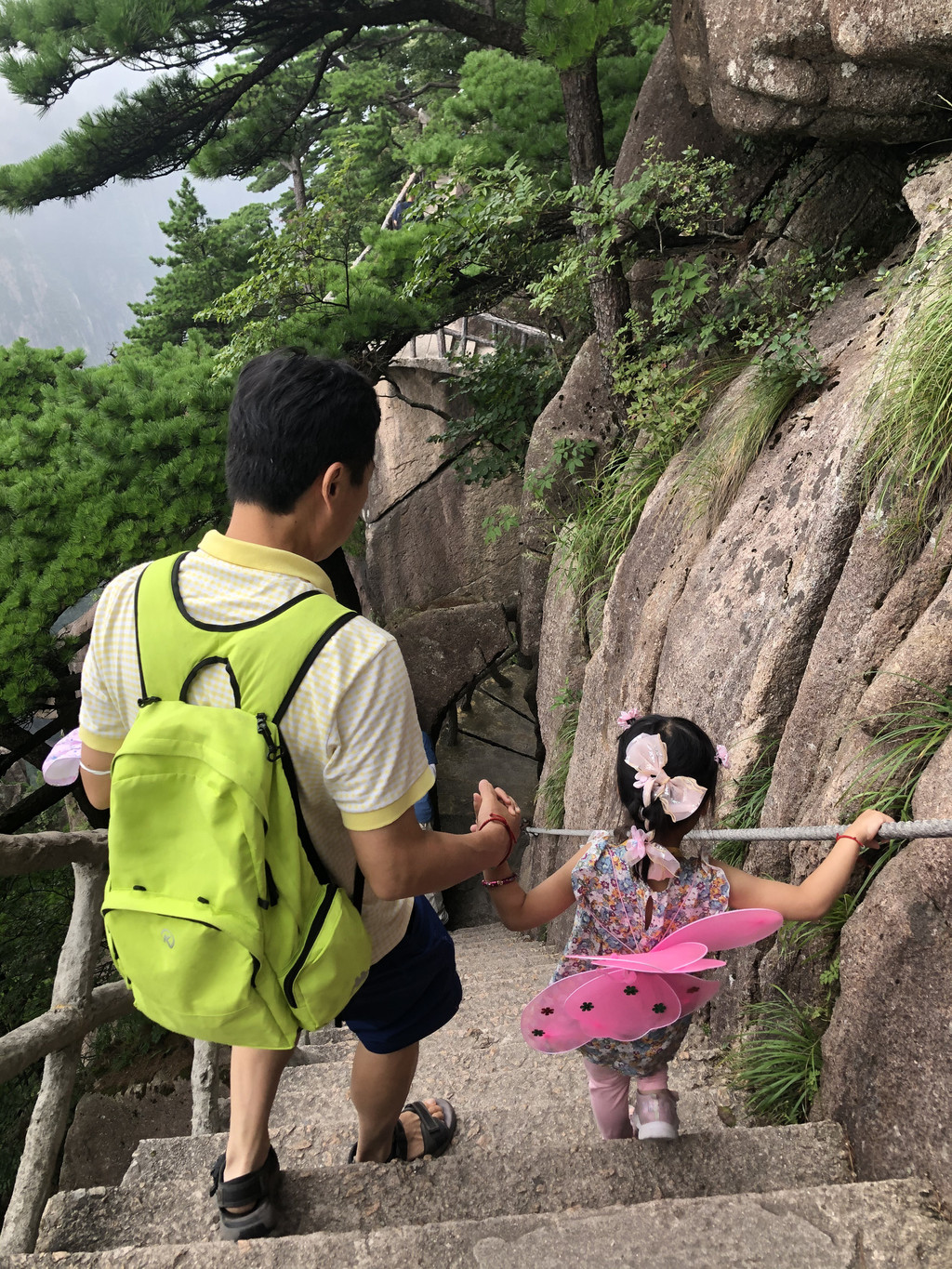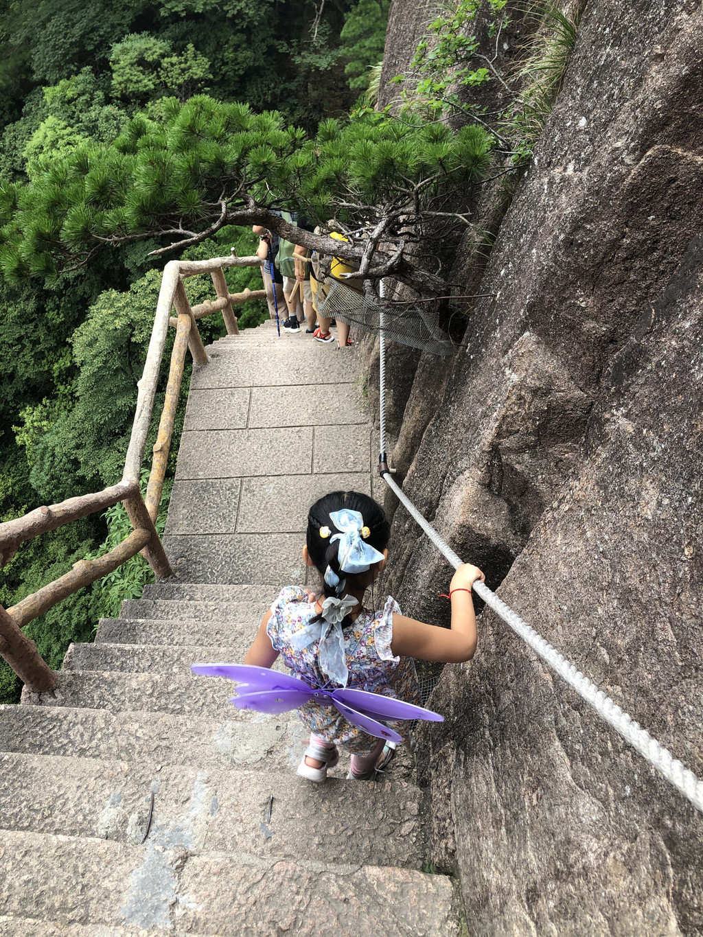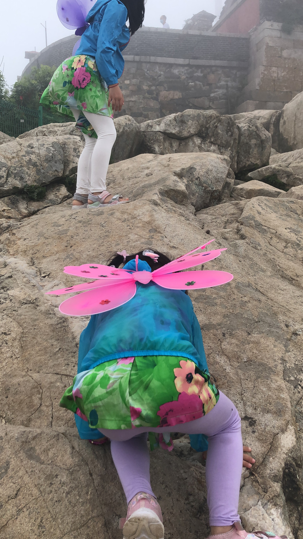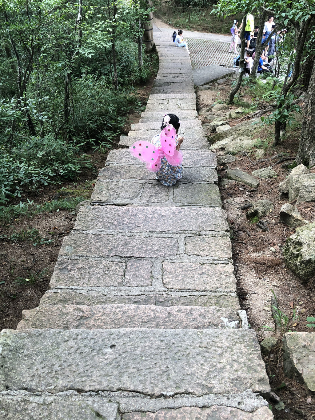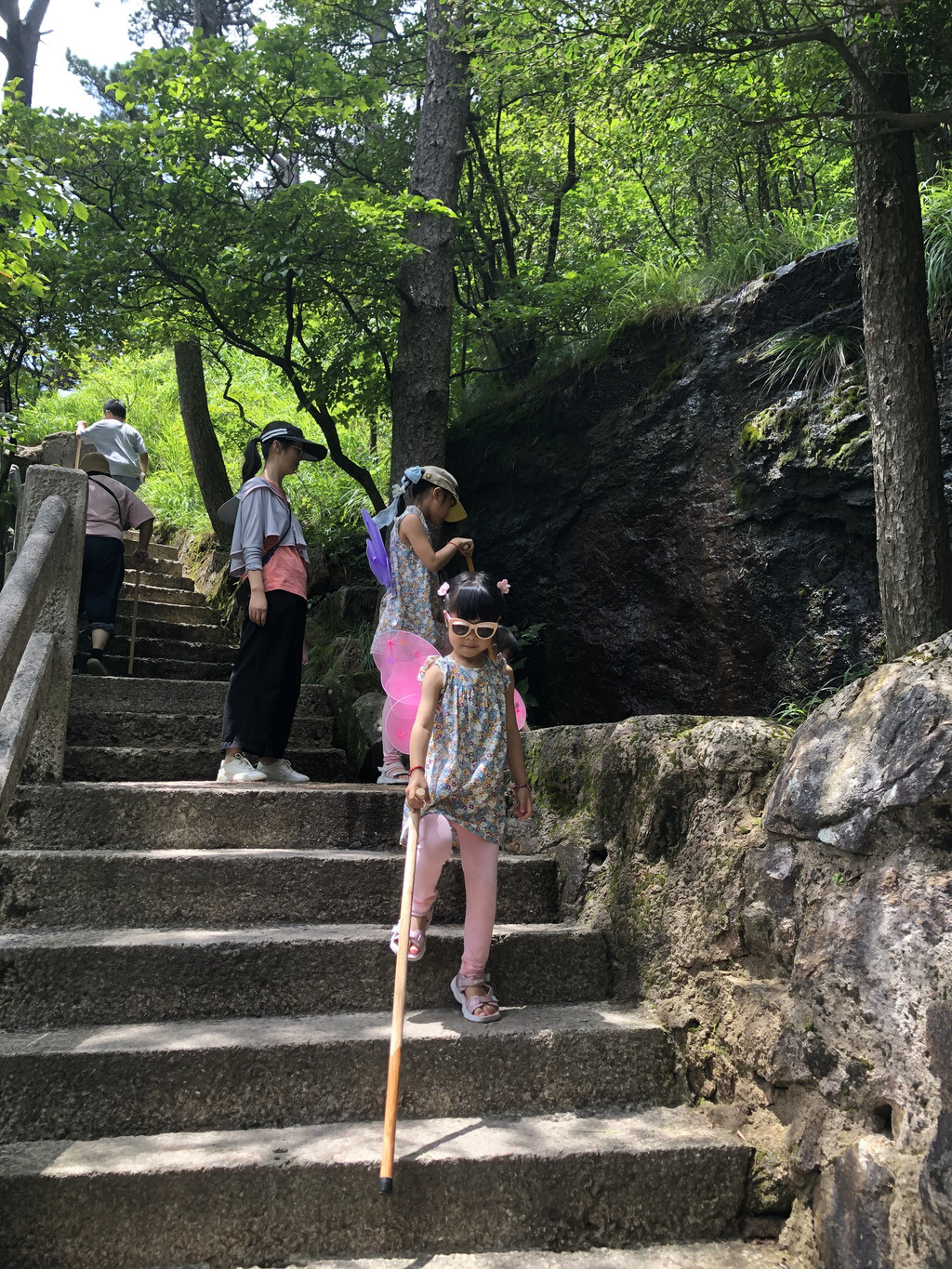 从排云亭去猴子观海,上山下山共有10公里,姐妹俩边玩边吃边看,姐姐前面带头,妹妹高高兴兴的跟着走,也有累的时候,就坐在台阶上休息一下,然后又走起来,没叫一声抱,真的了不起!