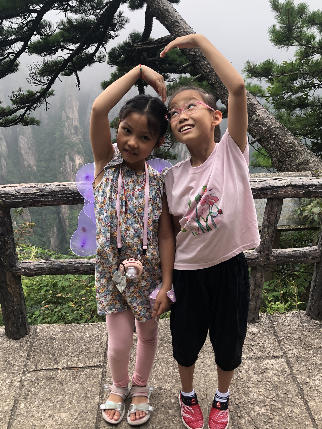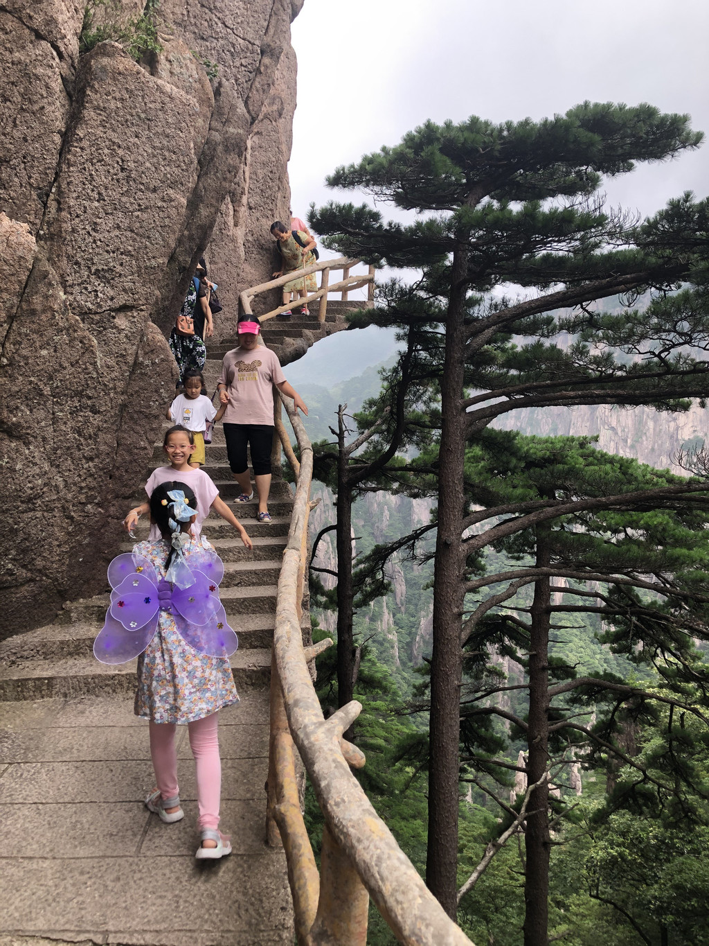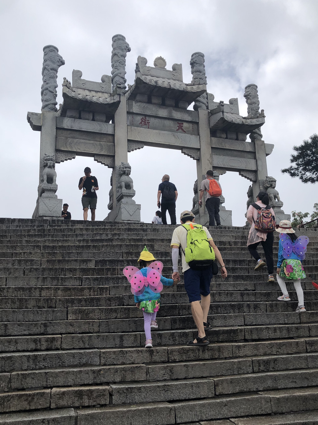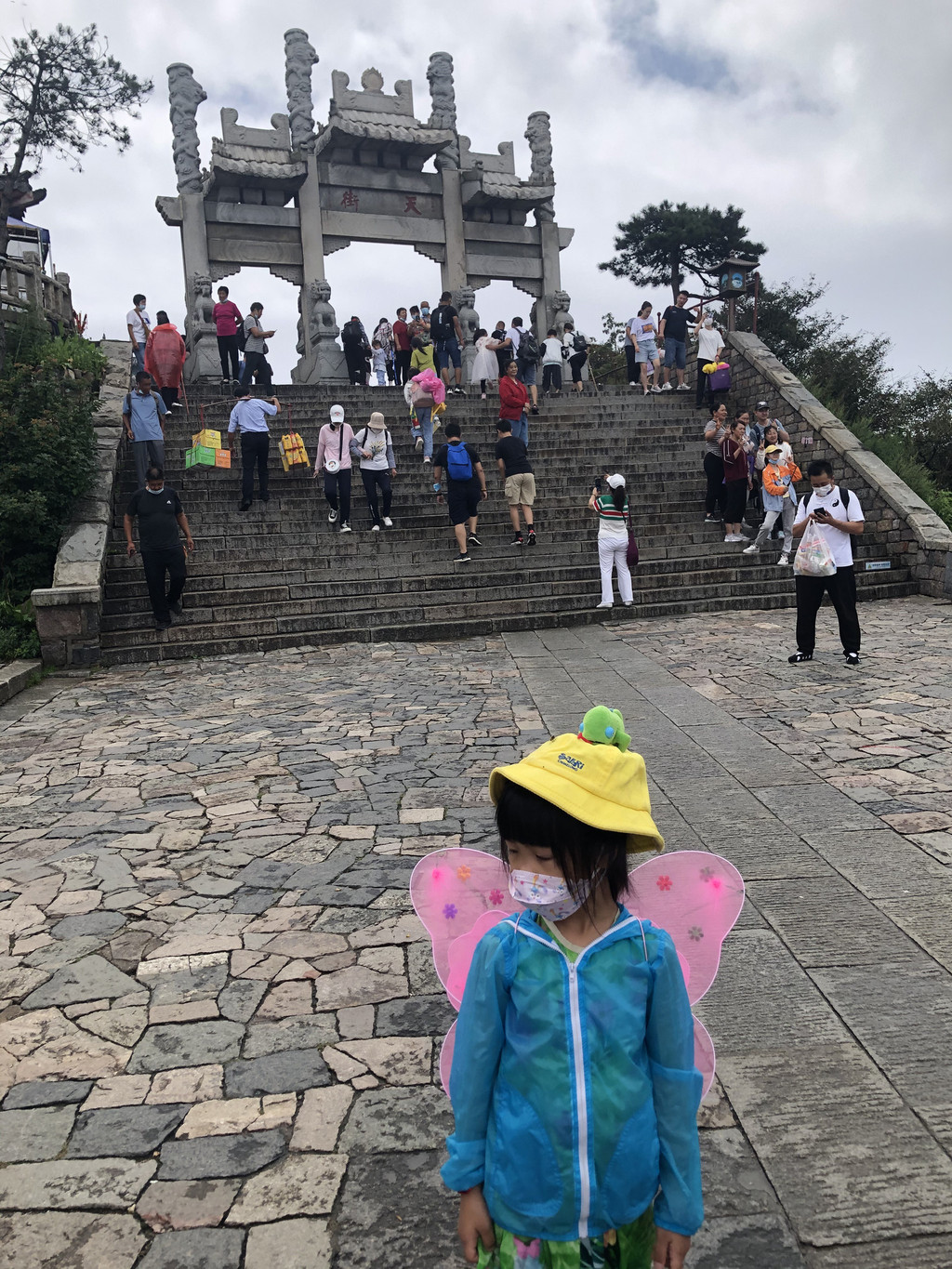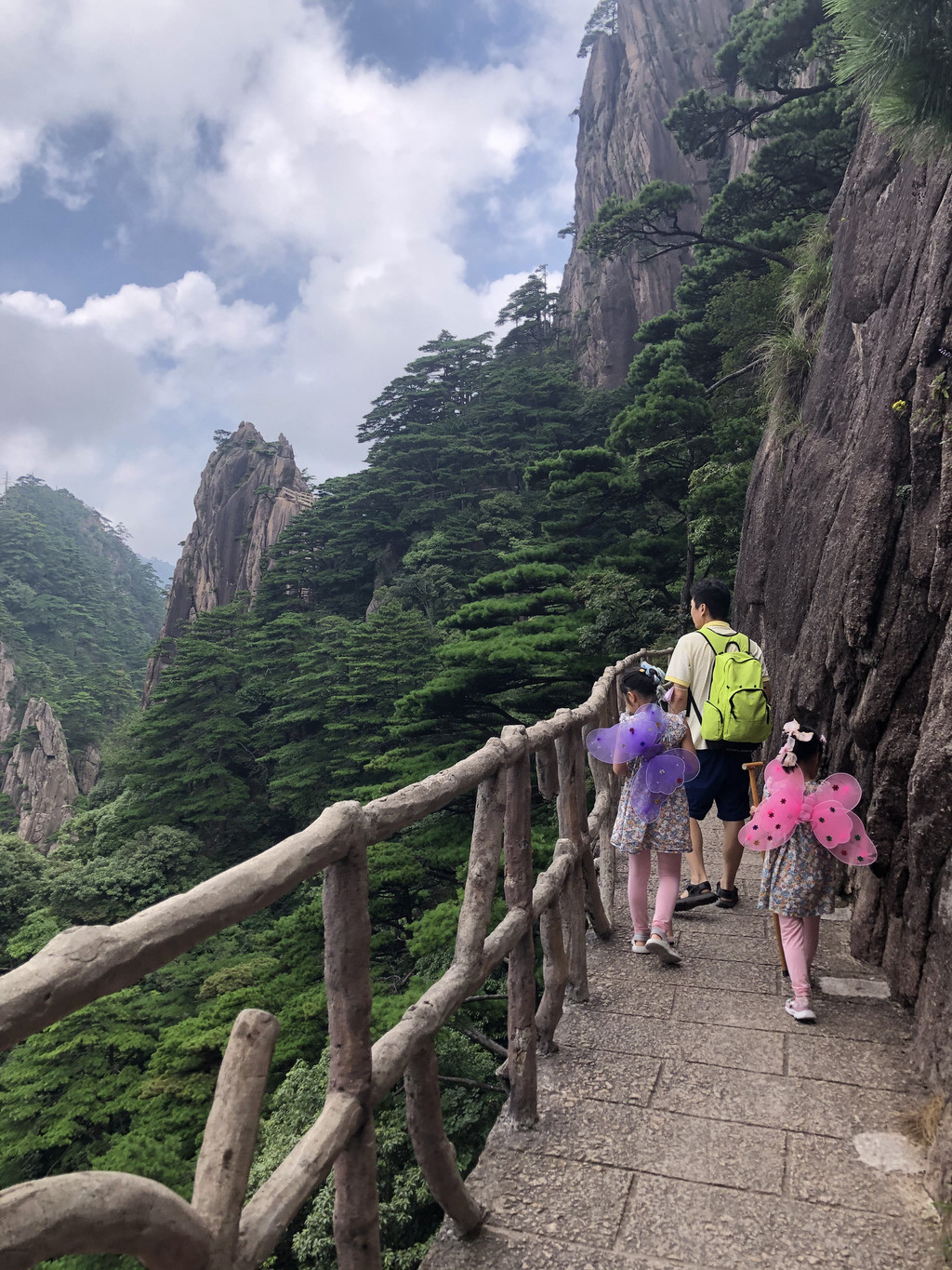 从排云亭去猴子观海,上山下山共有10公里,姐妹俩边玩边吃边看,姐姐前面带头,妹妹高高兴兴的跟着走,也有累的时候,就坐在台阶上休息一下,然后又走起来,没叫一声抱,真的了不起!