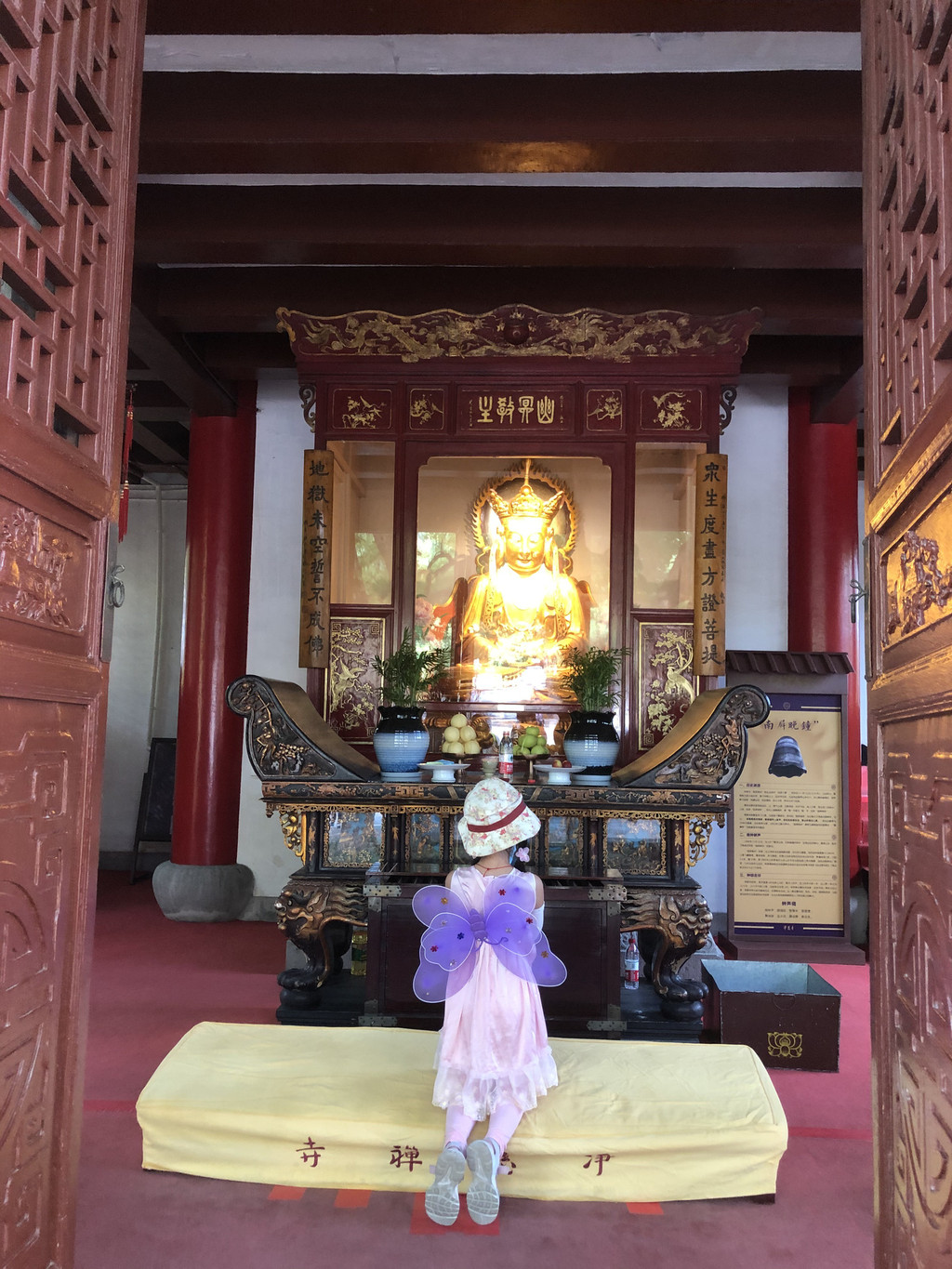 15:00办好入住,打车去净慈寺,听晴公主妈妈说,他们夫妇在净慈寺拜佛求佛送个小宝宝给他们,回家不久就心想事成,有了晴公主。晴晴今天特意来还愿,感谢佛祖保佑。
