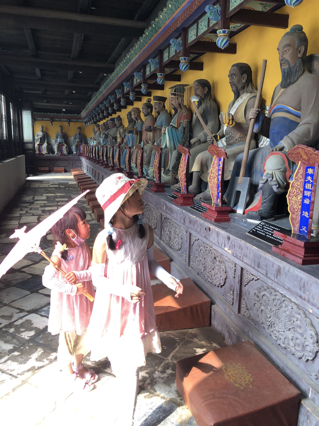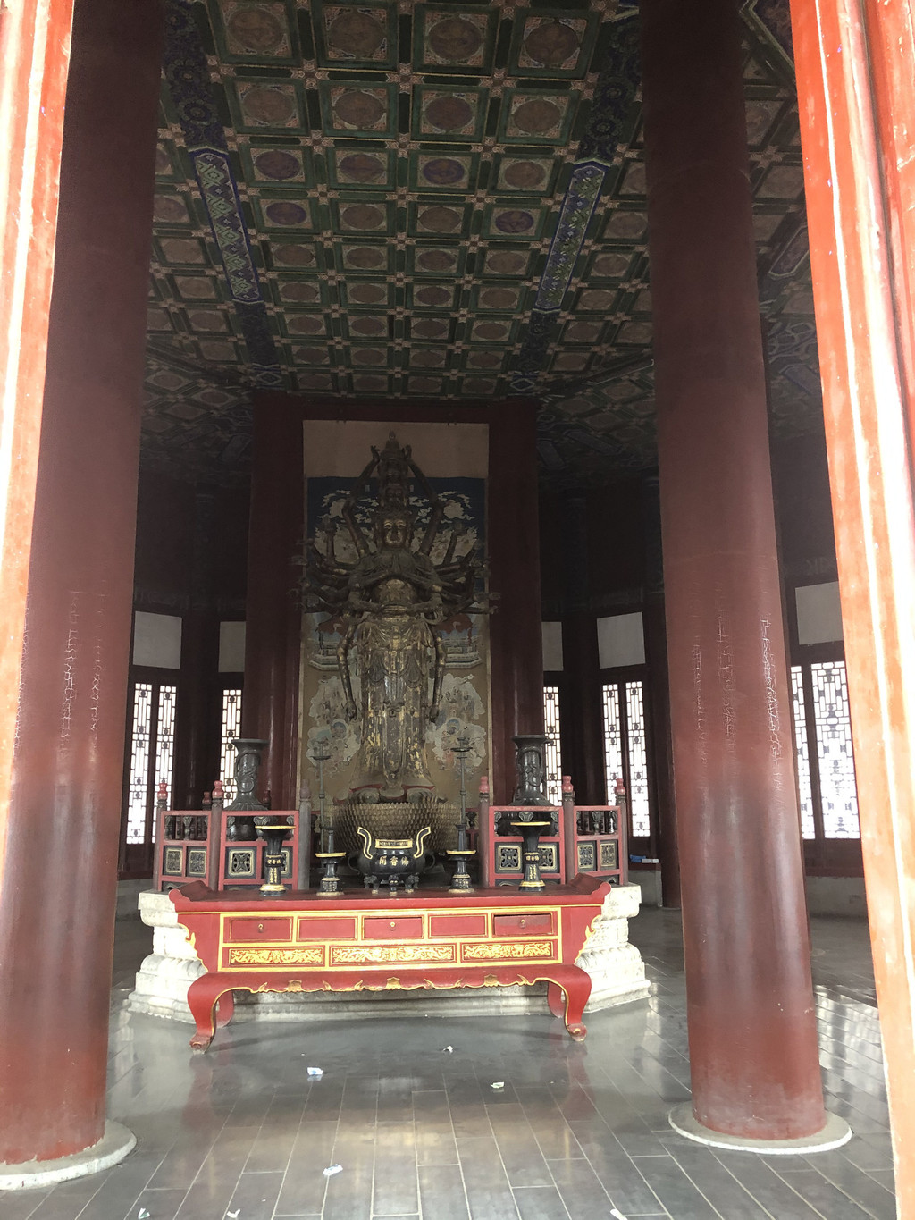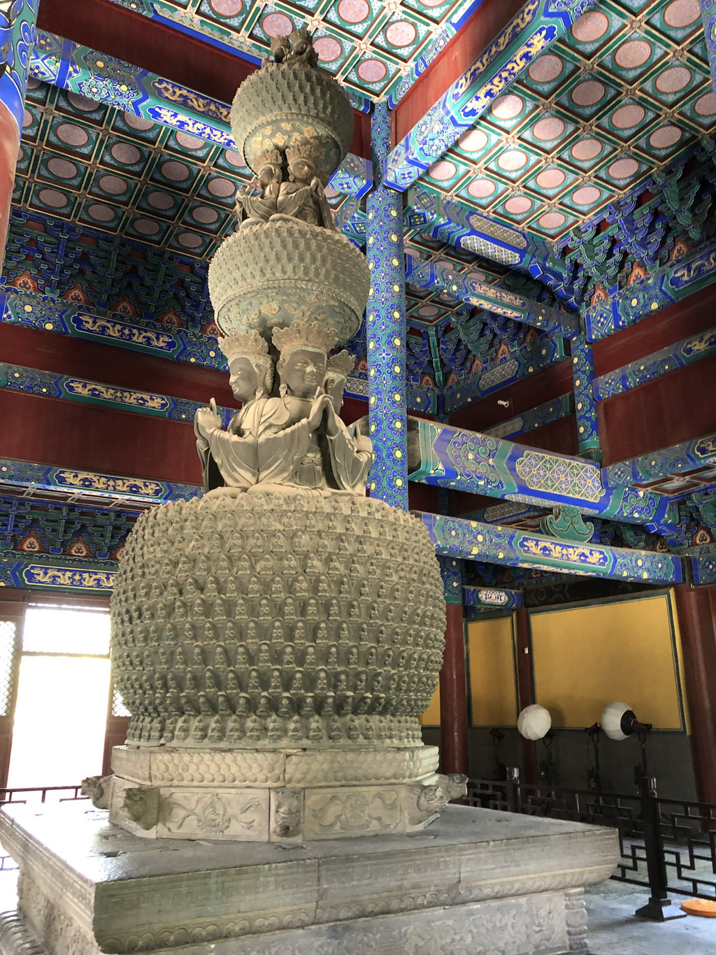 排云殿,是为了慈禧太后庆生而建的,是颐和园最高的主体建筑,楼梯好高,两姐妹很厉害,是自己爬上去了,见到明代的千手观音。