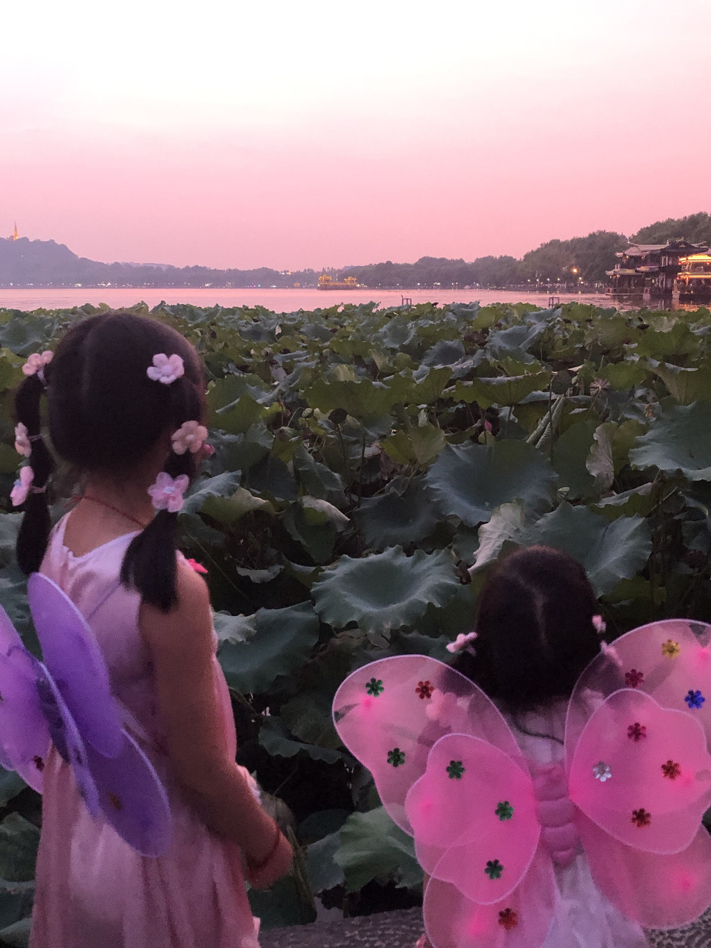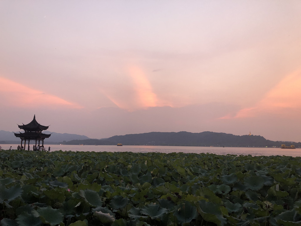 吃完去西湖边散步,因为我们住的太方便了,就在西湖边,很多人在那里拍晚霞。