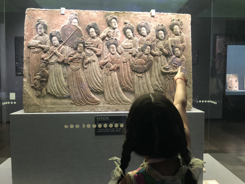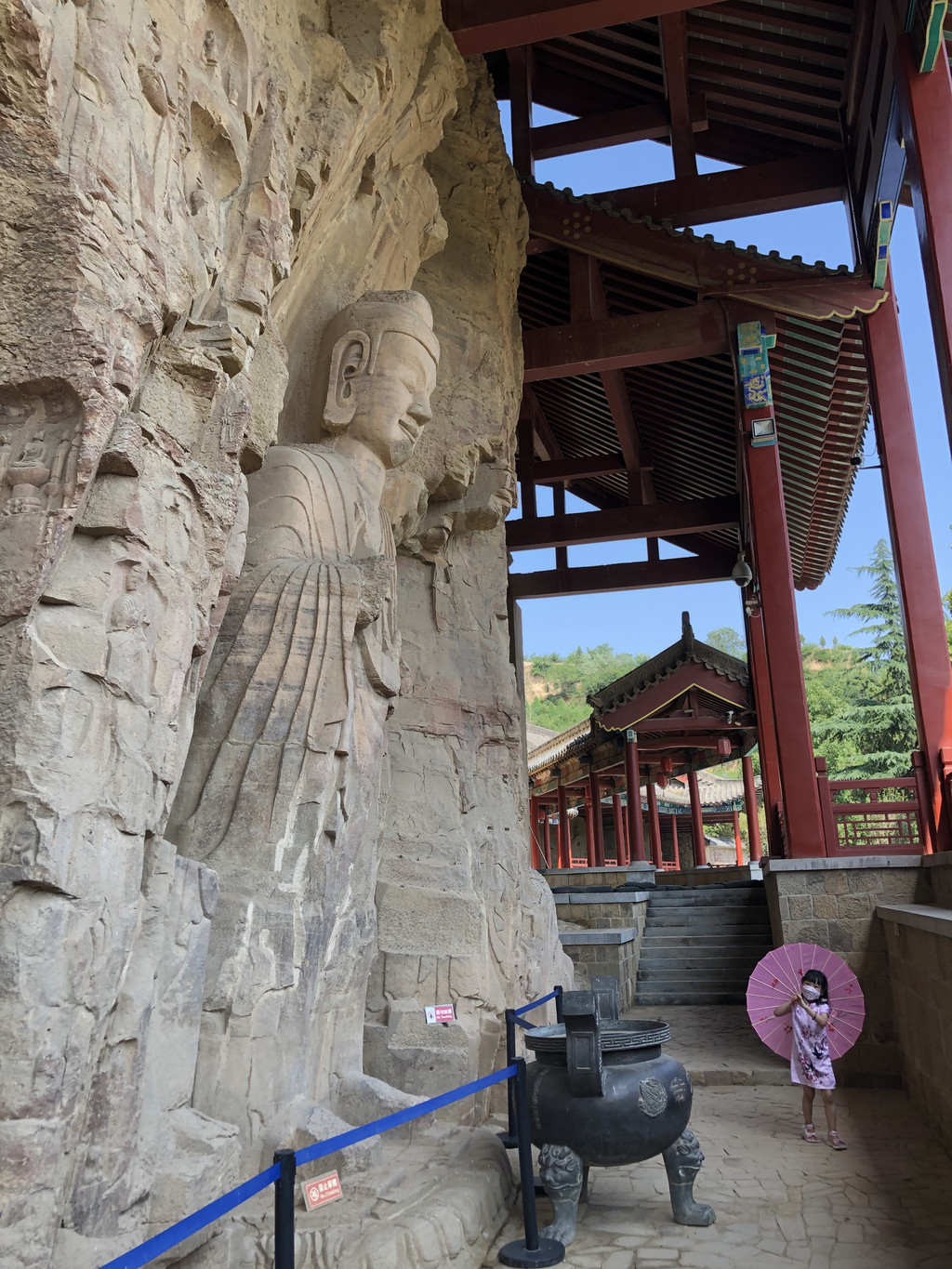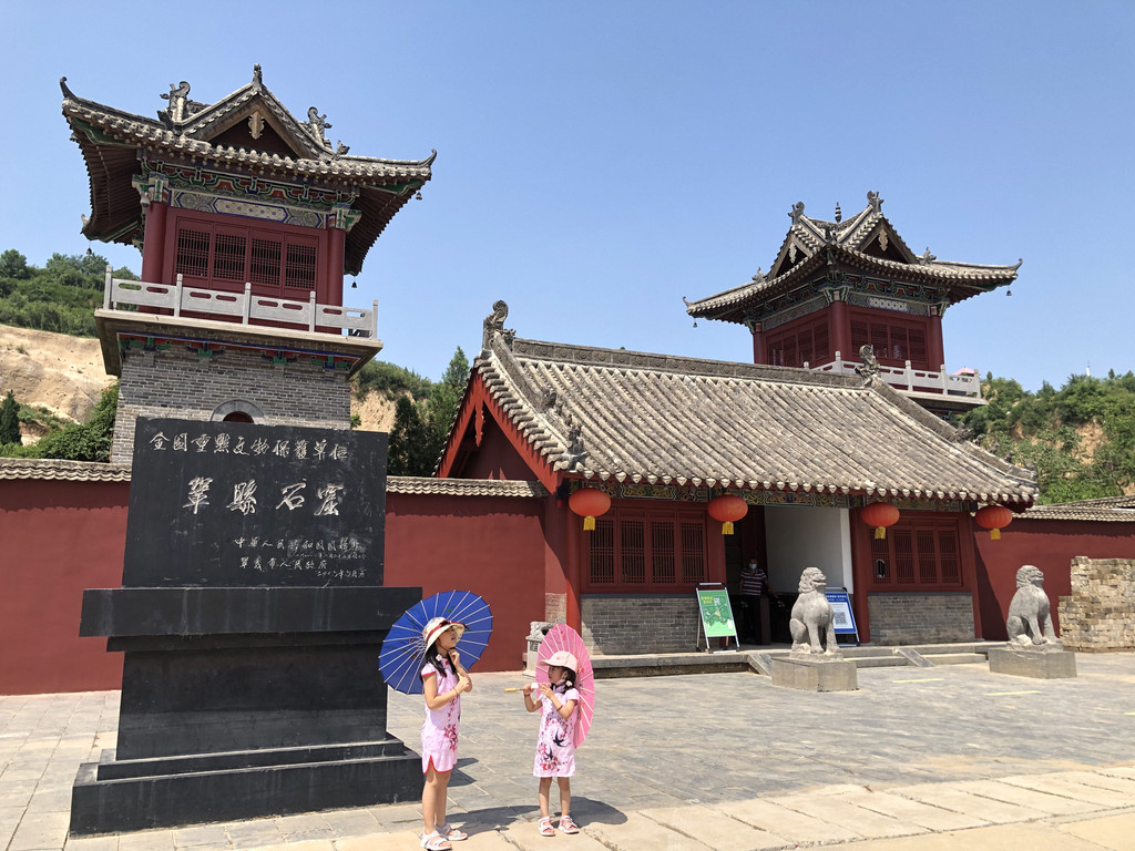 早上姐妹俩10:00又去游泳,这个时候游泳池就两三个人,她们玩的不亦乐乎。中午一点,退房,开车去巩义参观巩义石窟寺,车程1个小时。石窟寺门票¥35元,洞窟不多,但有两幅帝后礼佛图是国宝级的。