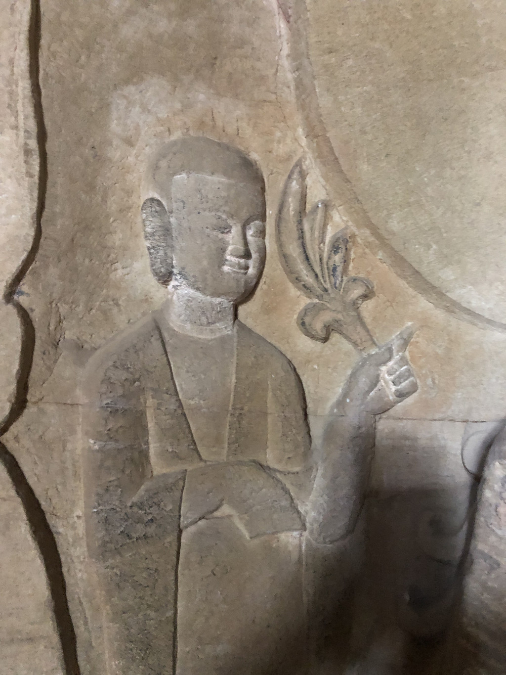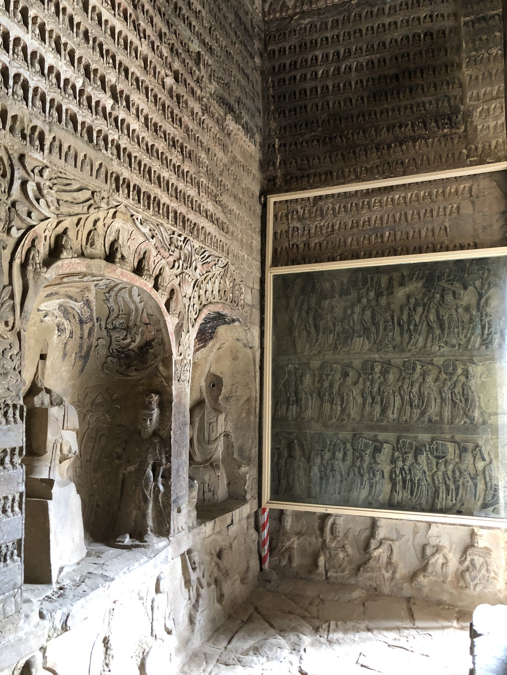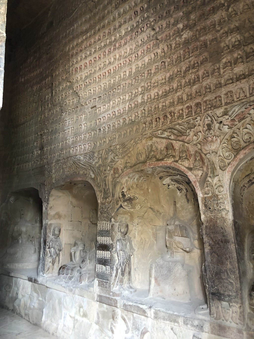 早上姐妹俩10:00又去游泳,这个时候游泳池就两三个人,她们玩的不亦乐乎。中午一点,退房,开车去巩义参观巩义石窟寺,车程1个小时。石窟寺门票¥35元,洞窟不多,但有两幅帝后礼佛图是国宝级的。