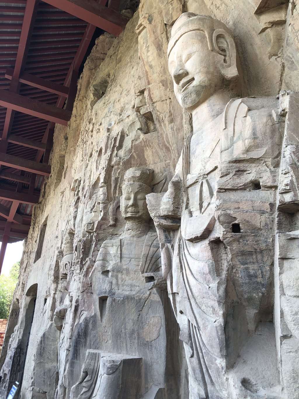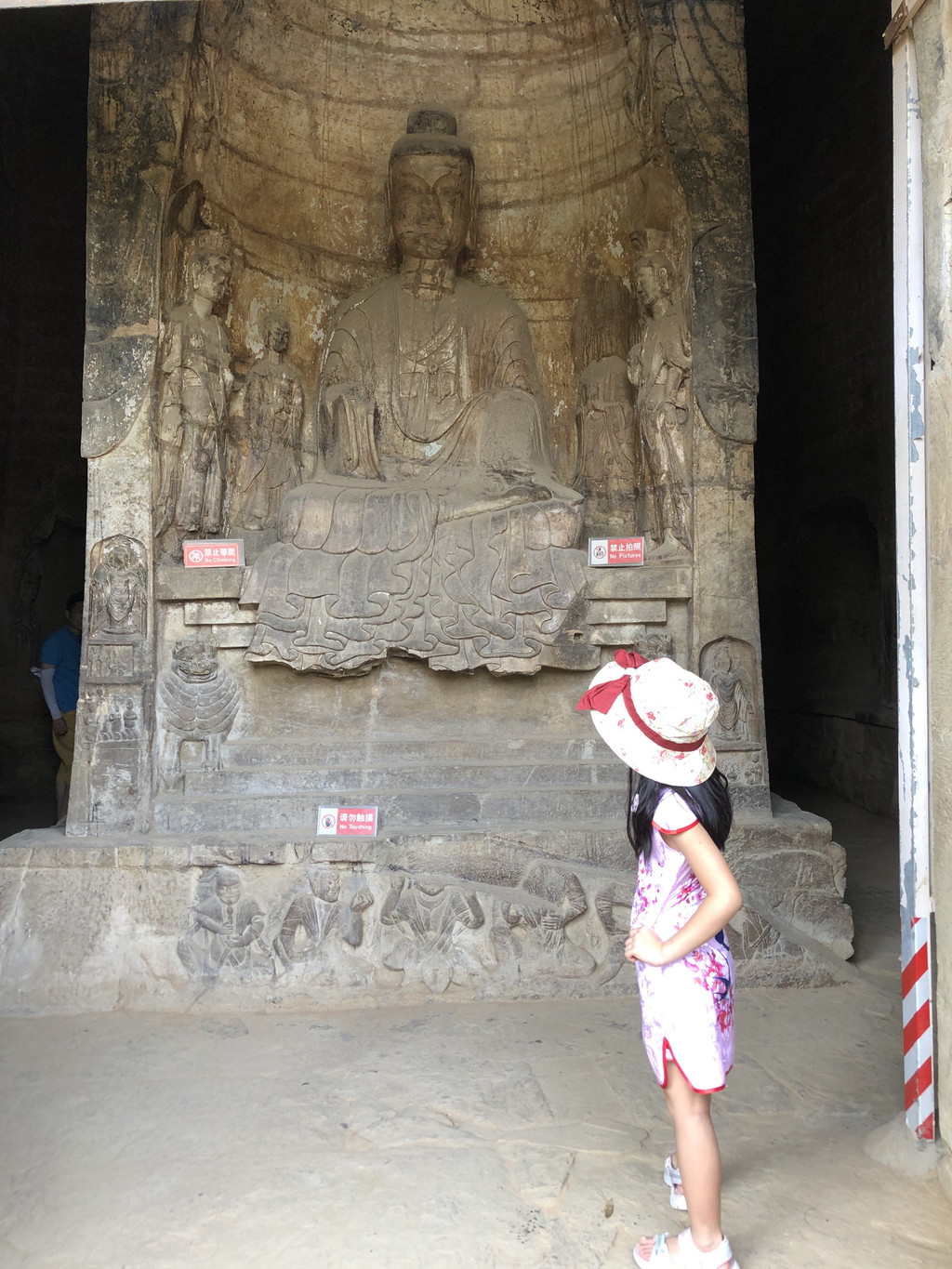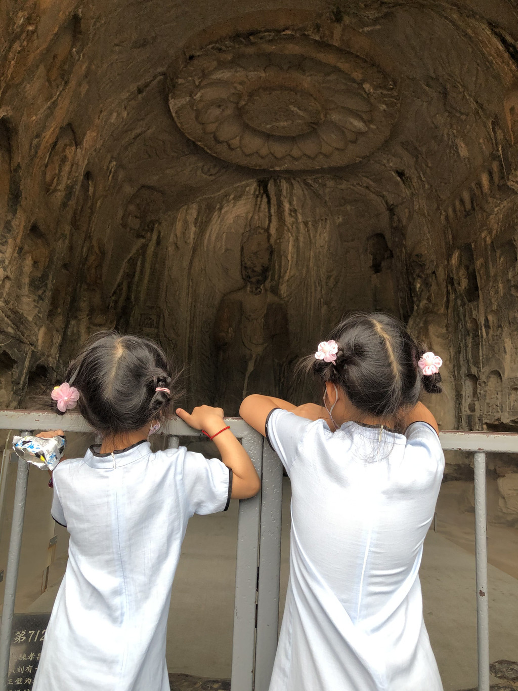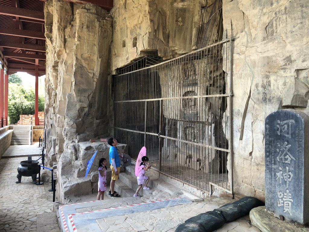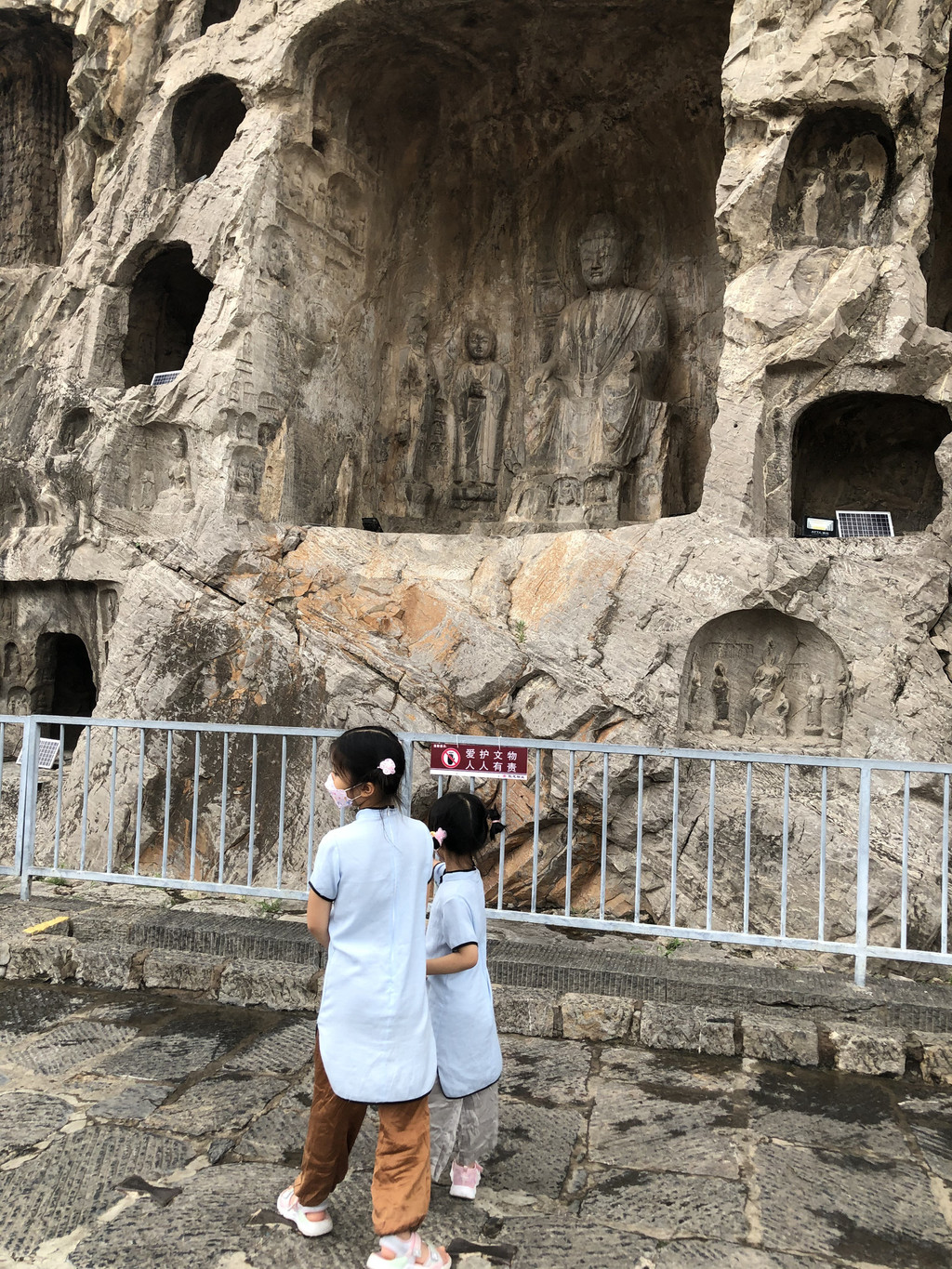 看看时间才16:00,想想明天白天可能会很热,倒不如现在就去龙门石窟,马上预定门票,改变计划,开车20分钟到了龙门石窟西门停车场,步行去到景区大门也就20分钟,也可坐电瓶车,10块钱一个人,车程1公里,我们没坐。16:30进景区大门,慢慢地往前参观,龙门石窟现在维修,宾阳三洞、卢舍那大佛都被围蔽,要到八月份才开,2020年带姐姐来看过,这次专门带妹妹来,却看不到,有点遗憾喽。