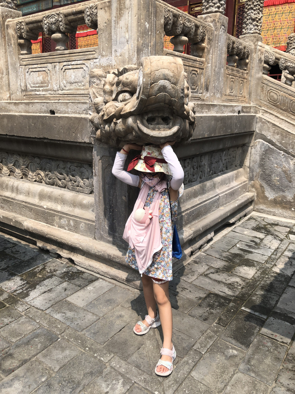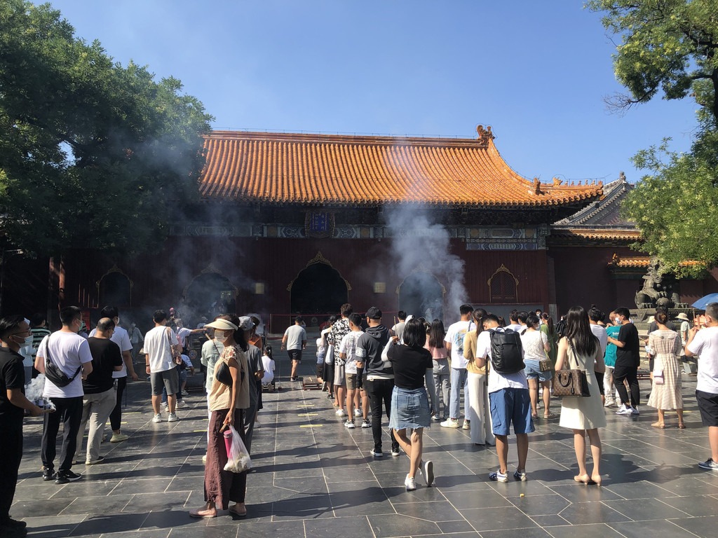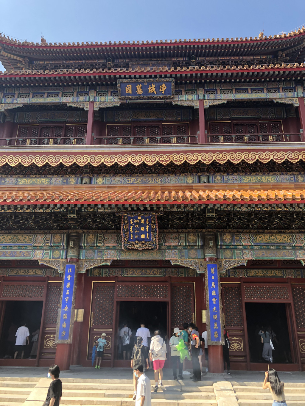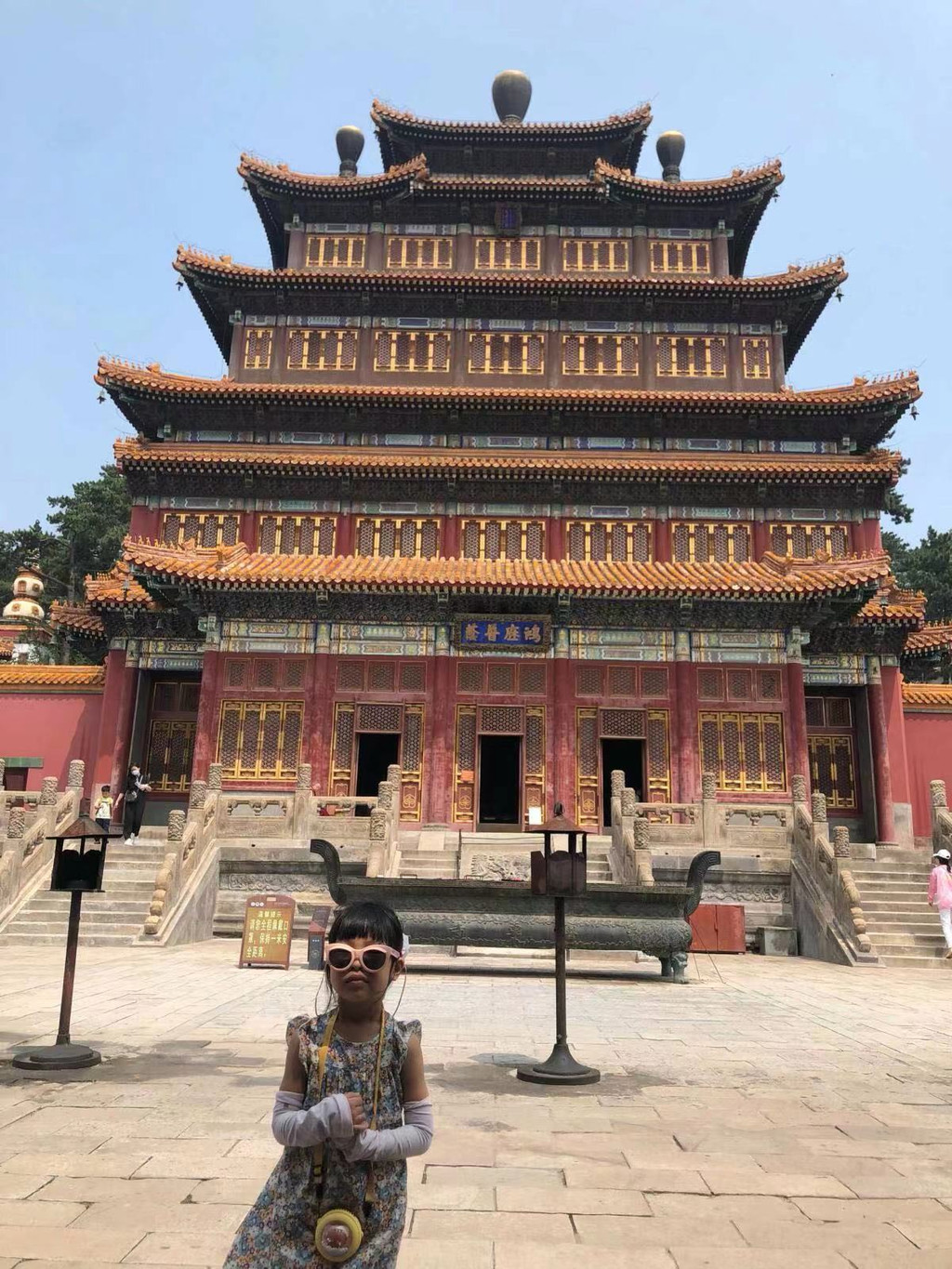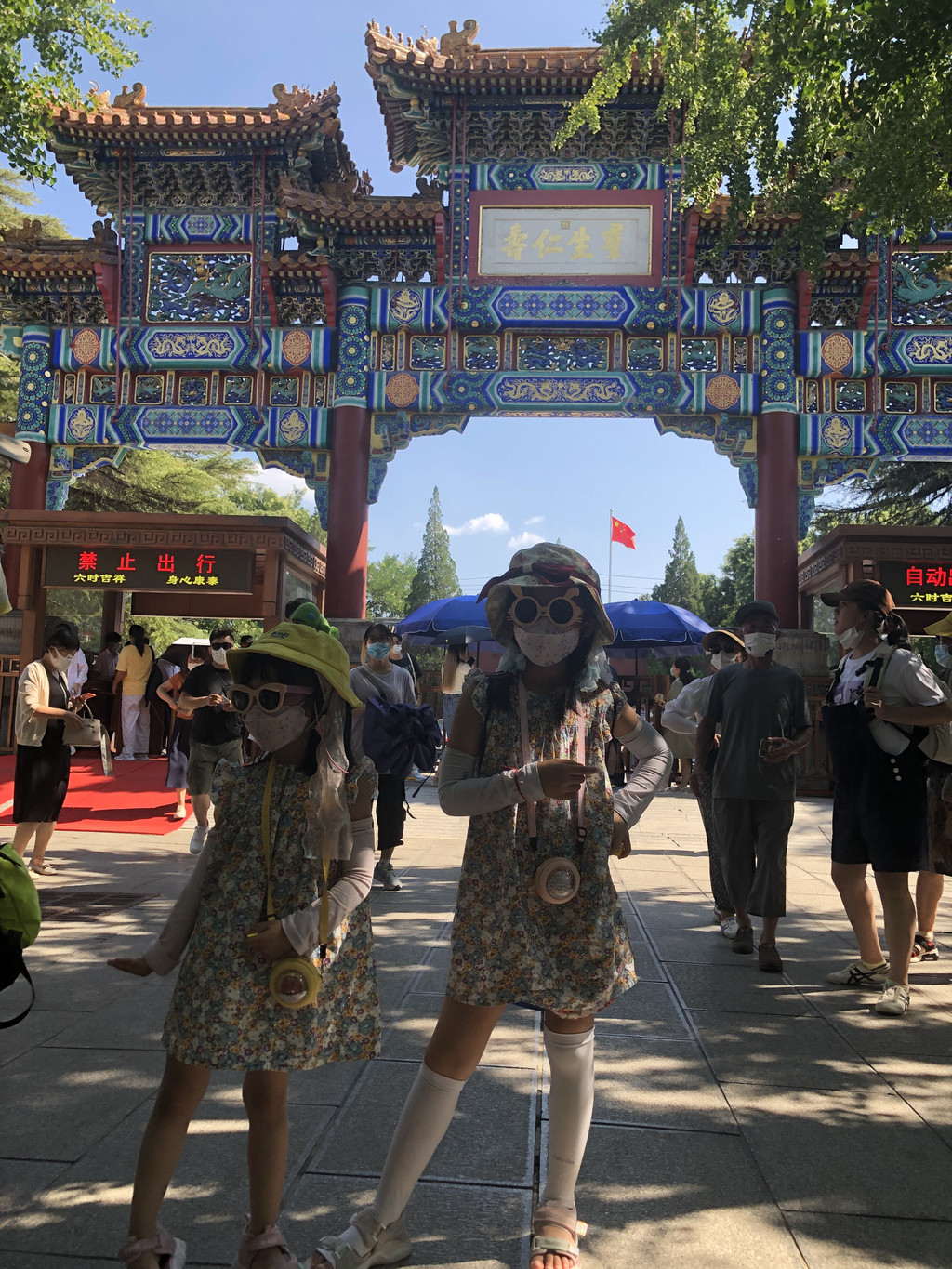 在国家博物馆门口坐地铁去“雍和宫”,因为疫情的原因,雍和宫7月16号才重新开放,没想到这么多人,主要是烧香的,游客少。我们带着两姐妹往最后的殿看吉尼斯纪录的26米高的白檀木雕刻的弥勒菩萨。
