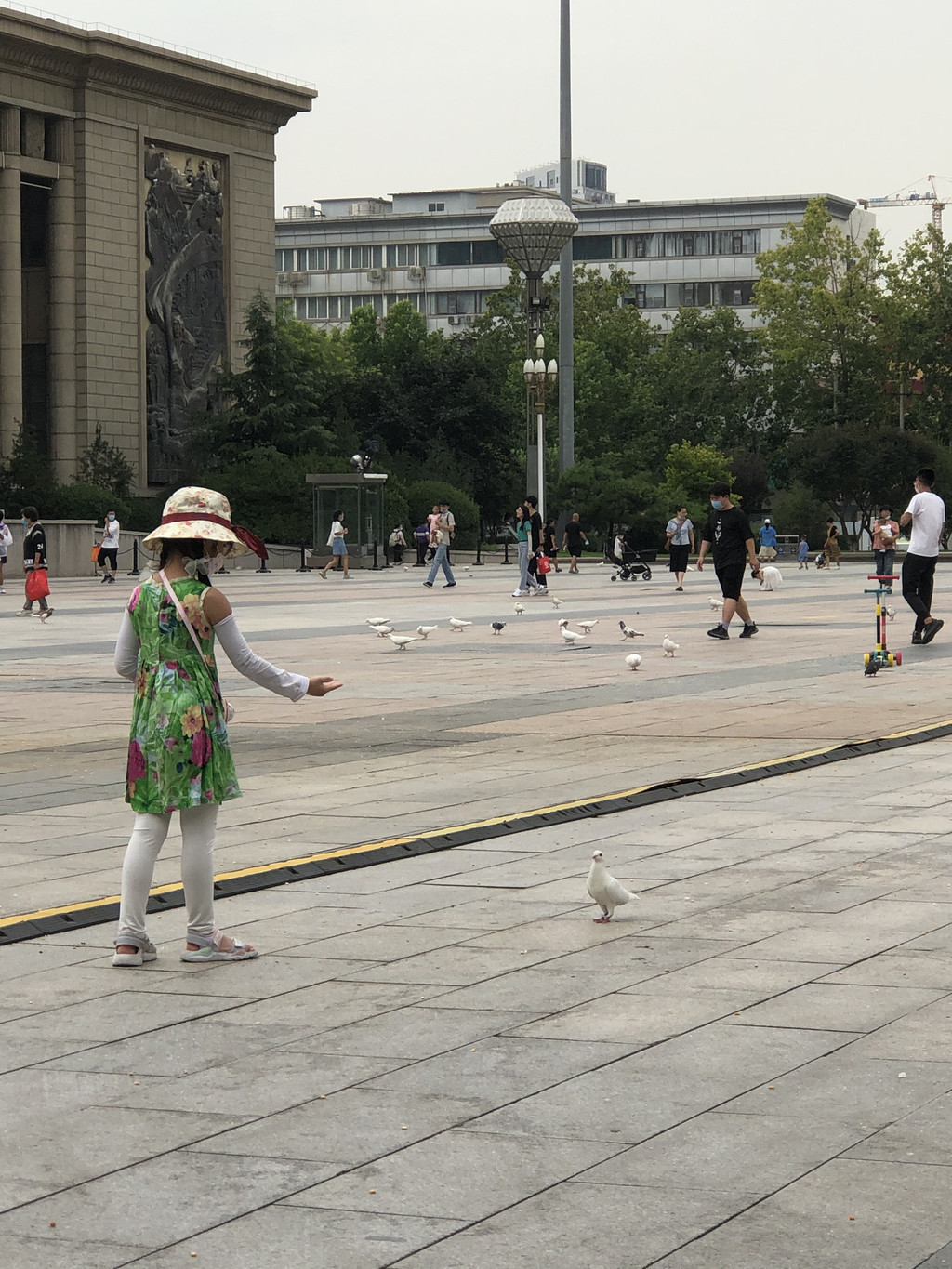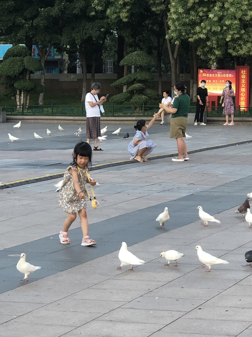 在马路对面的“中和轩”饭店吃饭,点了个金毛狮子鱼、鸭蛋黄大虾、羊肉饺子,太好吃了。晚饭后在饭店门口买了糖葫芦、氢气球,再去到旁边的河北博物院广场,广场的鸽子可多了,两姐妹奔跑着喂鸽子,妹妹更是兴奋的不得了,说今天这里这么多好吃的又有这么多鸽子,都顾不过来了。
