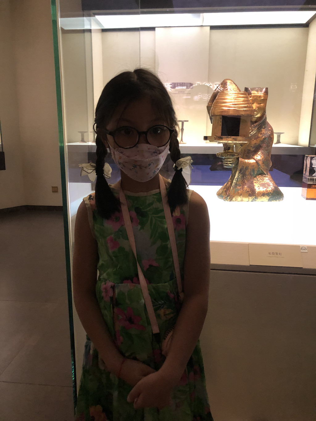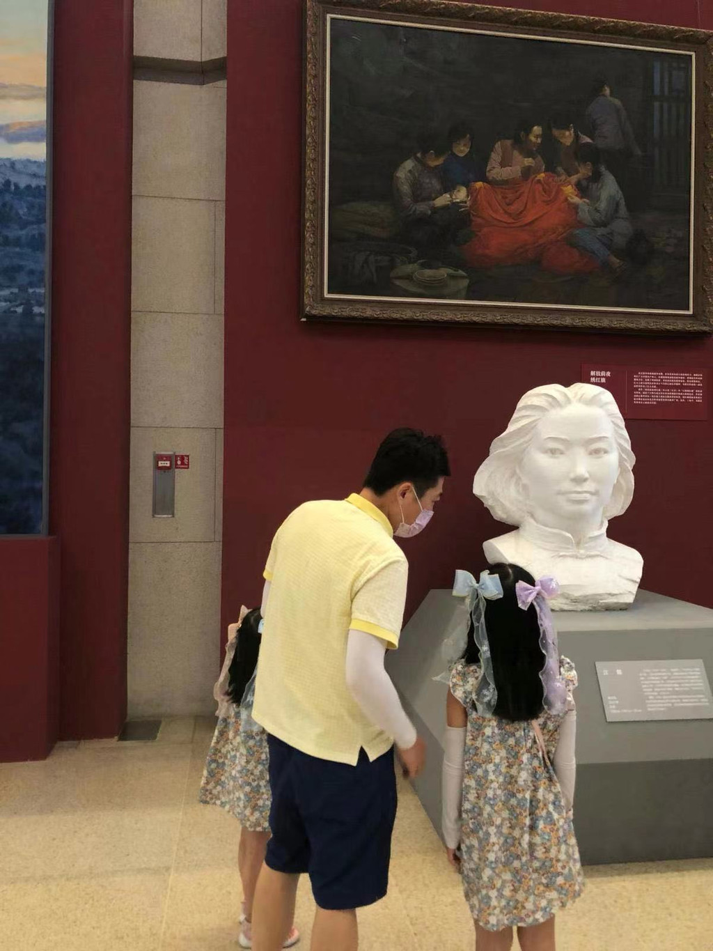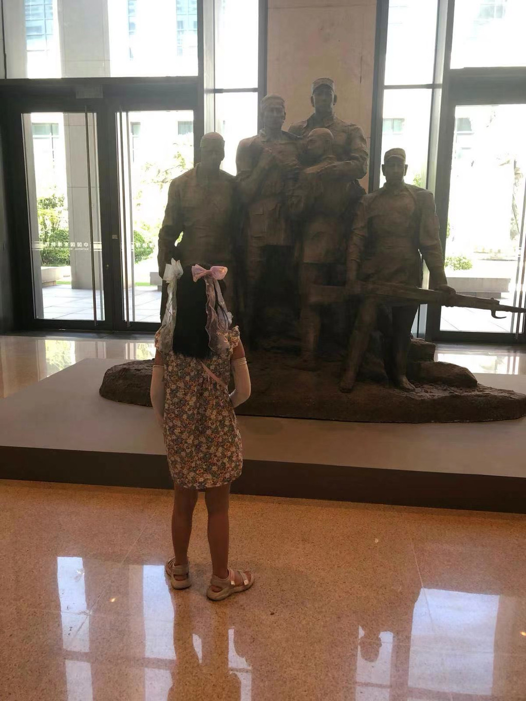 9:30吃好早餐就去河北博物院广场喂鸽子,然后进去博物院参观,有一个熊猫展很适合小孩参观的,小学生讲解员专门介绍熊猫的前世今生,姐妹俩很认真的跟着慢慢地听,然后上二层去参观国宝中山国汉墓出土金缕玉衣,长信宫灯,又参观了曲阳白玉雕,北朝的瓷器。带小朋友们来也是为了他们能够从中了解中国的历史,增长知识。