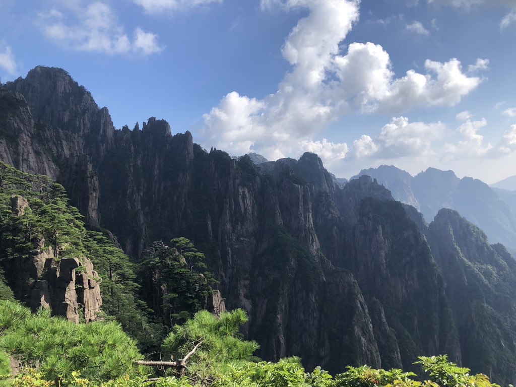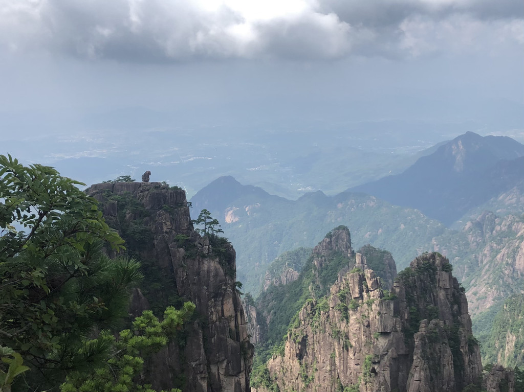 我们坐在排云亭休息,石头板凳凉快,和风吹佛,静下心欣赏一下黄山的美景。