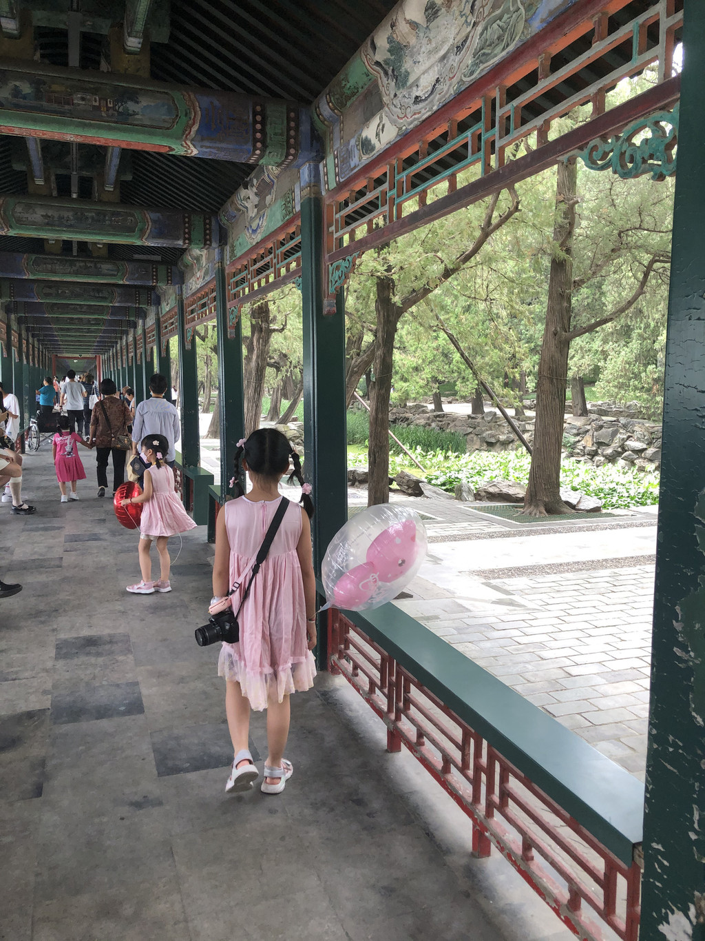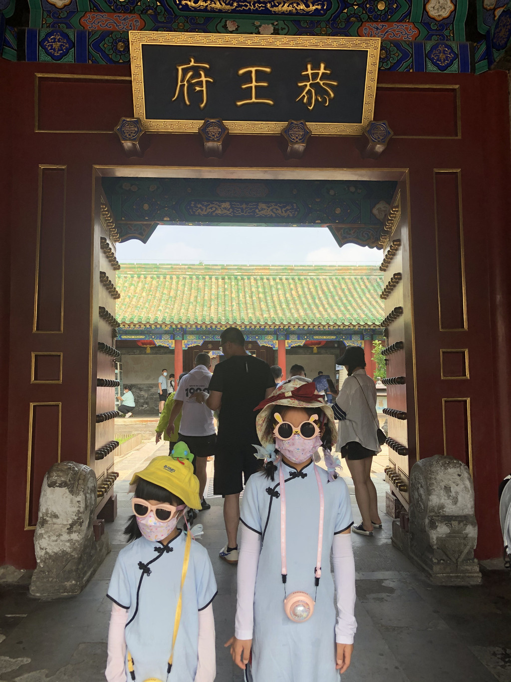 早上10:00打车去恭王府。星期天人很多,恭王府在7月19号才重新开放,进了恭王府大门,两姐妹跟旅游团蹭讲解,姐姐很喜欢听。