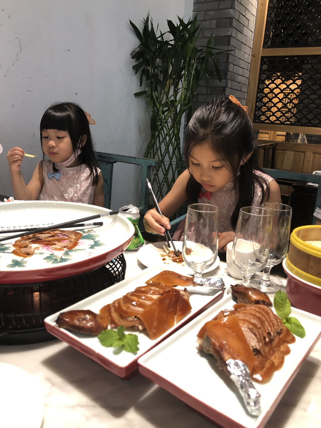 两姐妹喜欢吃烤鸭,提出离北京前再来吃一次。