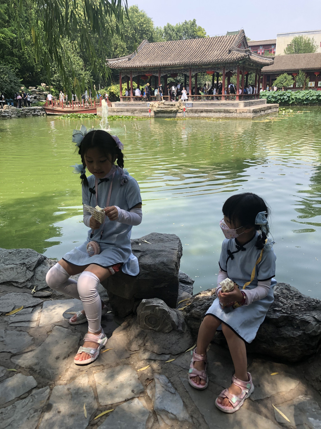 今天阴天,有风,27度,体感舒服。买门票30元/人,从正门进去,先去了知春亭看鸭子