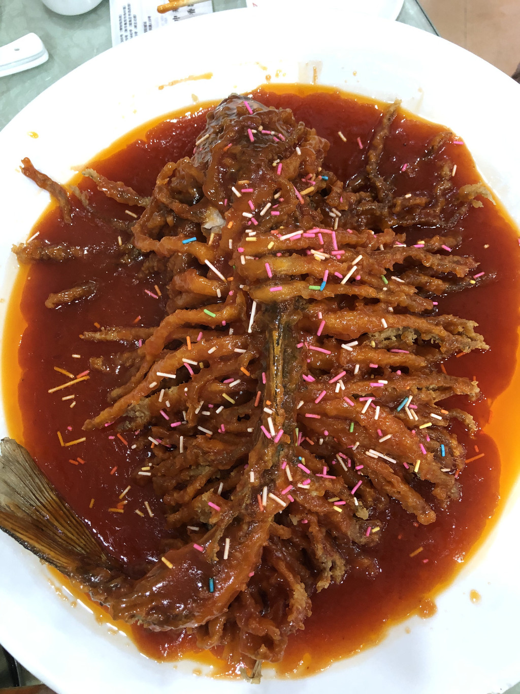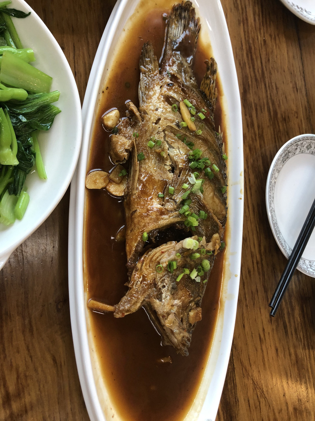 晚餐杭州饭店继续食叫化鸡、西湖醋鱼,两姊妹至爱。