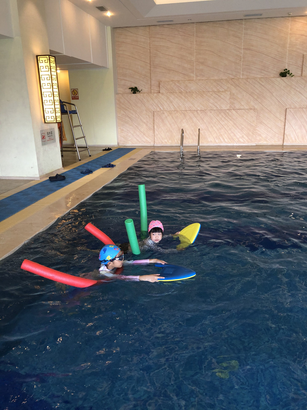 今天往回广州的方向开,直接到鹰潭的酒店,酒店有泳池,两姐妹马上去游泳。
