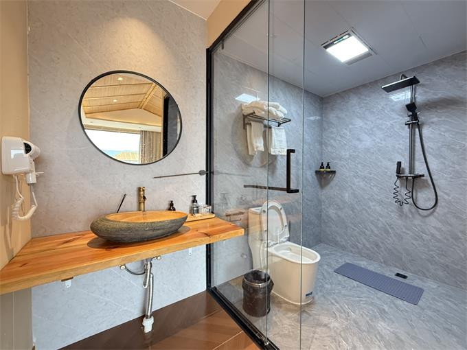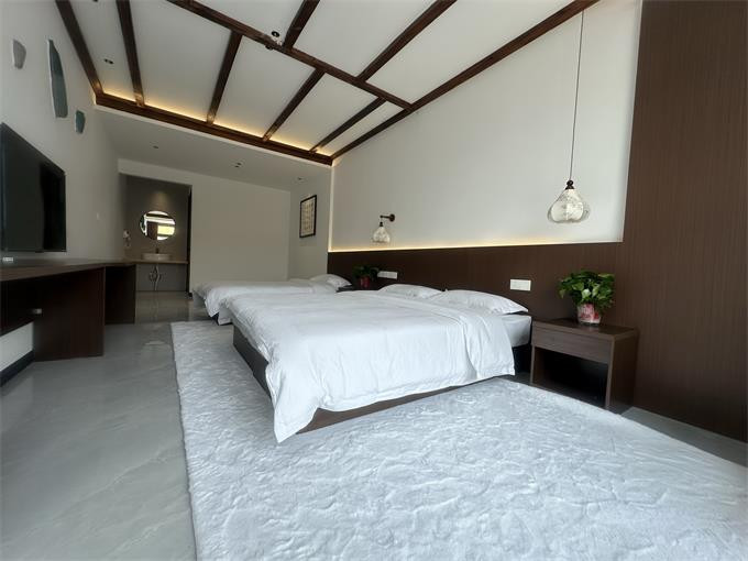 房间设施:江鸿民宿拥有110间精心设计的客房,可同时容纳二百六七十人,这里房型丰富多样,标间、套房、大床房、亲子房等多种房型任您挑选,从温馨亲子房到宽敞多人套间,全方位满足不同人群的居住需求。客房内全新配置一应俱全,超大空间搭配舒适布局,尽显品质格调。无论是大型公司团建的热闹氛围,还是家庭出游的温馨时刻,都能完美承载。客房与设施全新升级,细节之处尽显品质,为您带来超预期的住宿体验。更贴心的是,所有客房均采用干湿分离设计,洗浴如厕分区,便捷又卫生,为宾客带来舒适安心的入住体验。