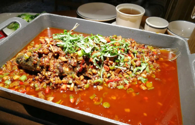 缘贡古色古香他家的豉香全鱼,是必点的,鱼都是现杀现做的,新鲜的鱼肉更加的鲜嫩入味、弹性十足,口感特别好,超大一条鱼,第一口惊艳到我了,浓郁的豉香味刺激着我的味蕾。浓稠的汤汁泡着饭吃起来很过瘾。