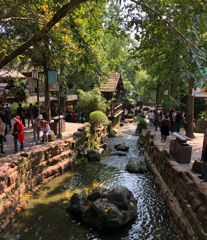 黄龙溪中国天府第一名镇但丝毫不减小桥流水人家的意境,此情此景如诗如画,美得让人陶醉。进门见个大鼎,喷泉喷鼎,阳光充足,五光四射,沿着小溪,顺流直下,来到一座拱桥,可以去上面逛逛。