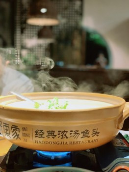 来自千岛湖捕捞的鲜鱼,慢火烹制,鲜嫩的豆腐与汤汁融合,豆香与鱼肉的经典交织,一口下去,任何不忿与幸酸之情都被悄然治愈。