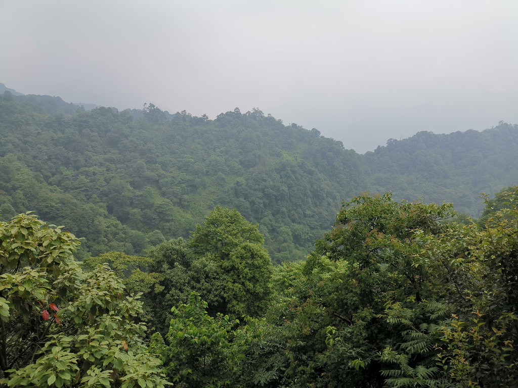 《頂》觀景依欄立,山風過胸吹。雲霧繚繞裏,重巒濃淡嵬