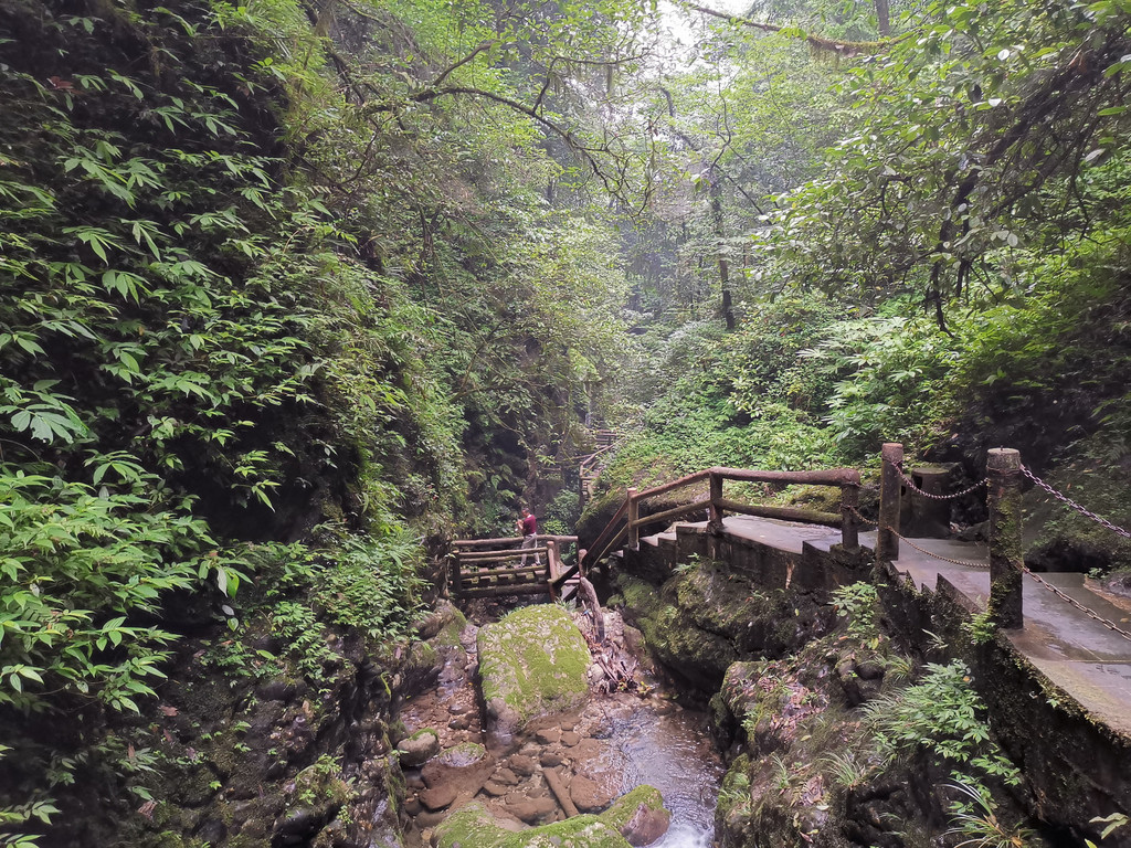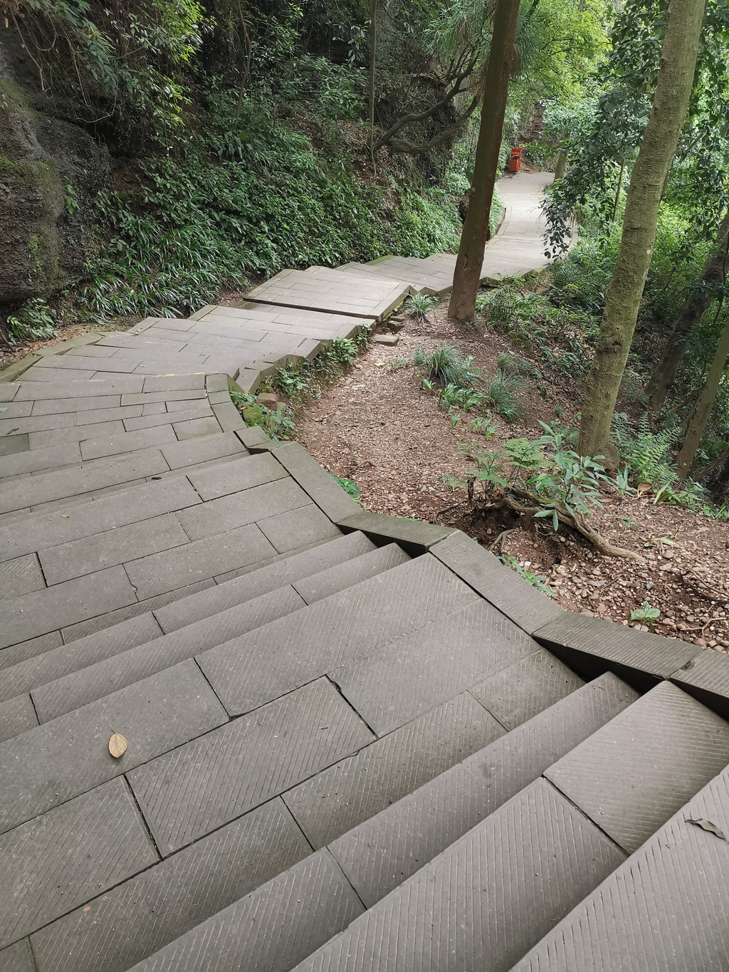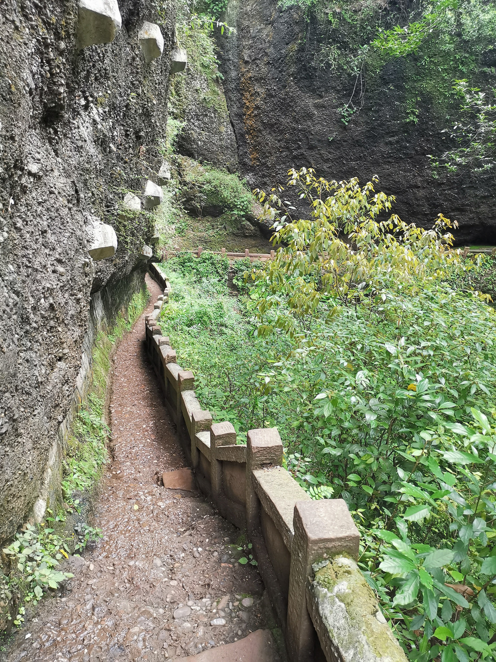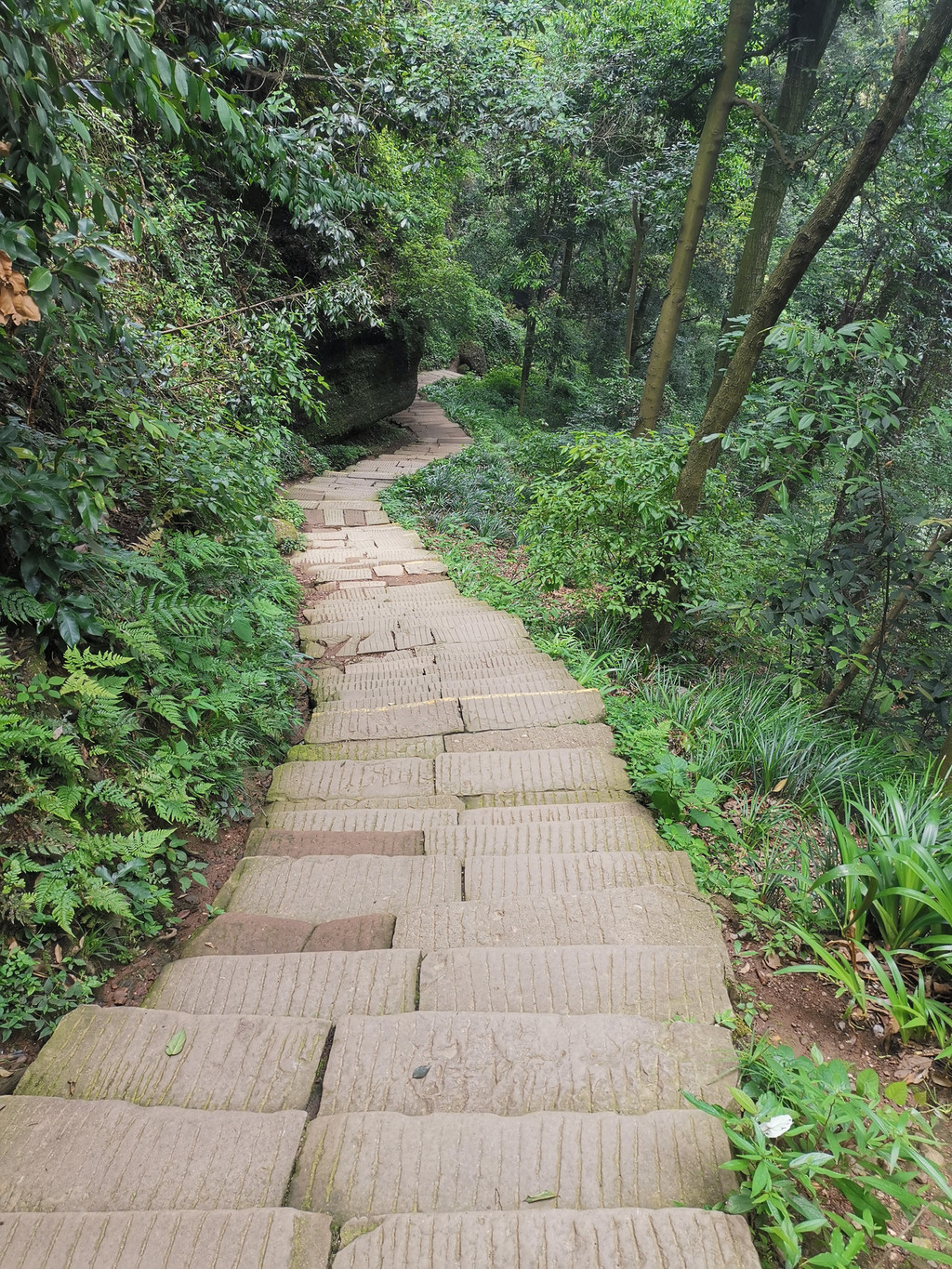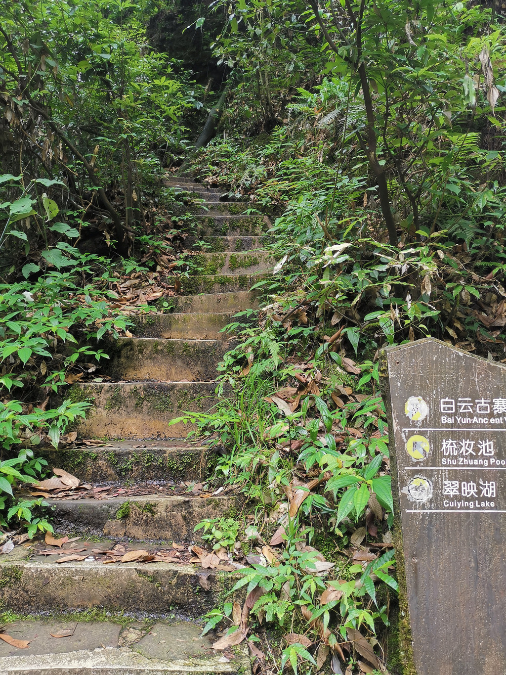 景区里大部分的道路都铺设有工整的水泥台阶,这里是少数比较粗糙的路面