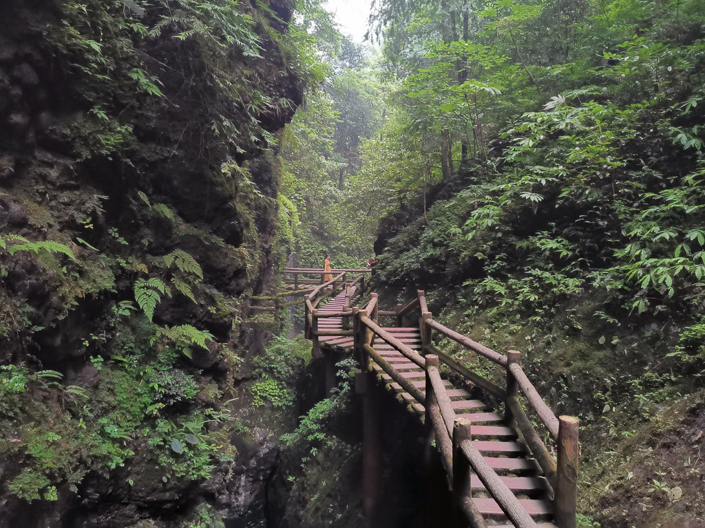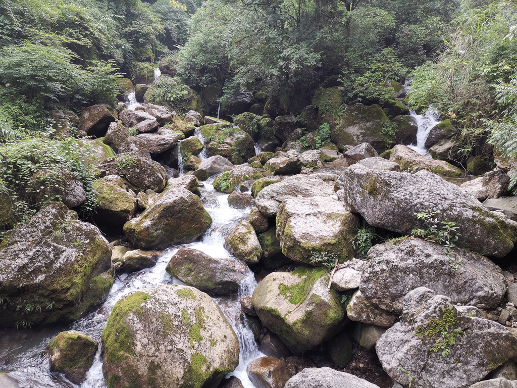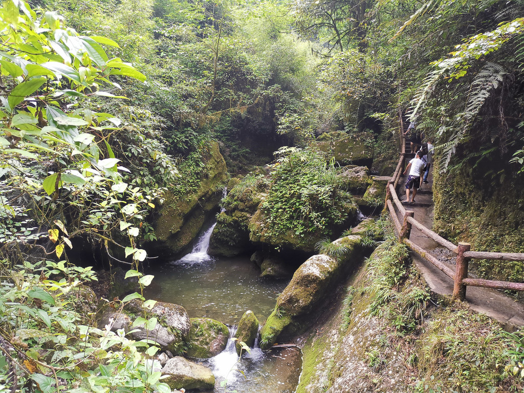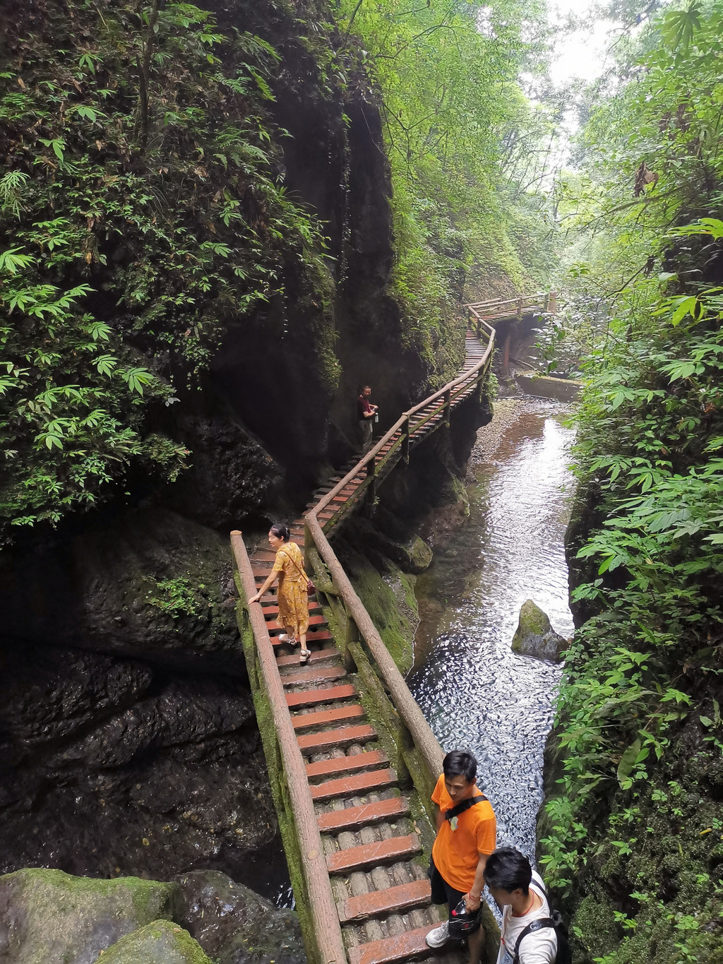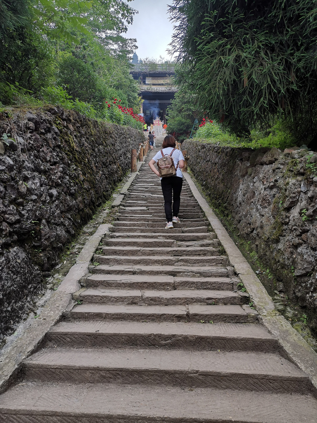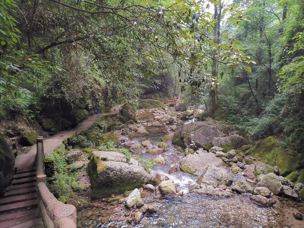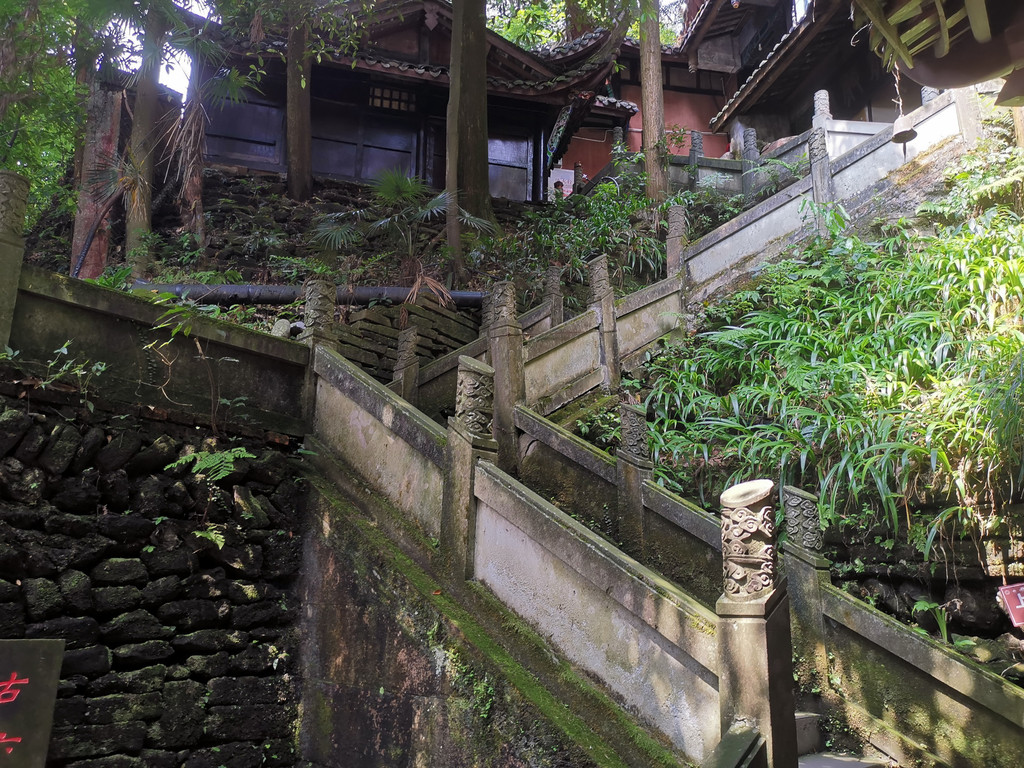 景区里大部分的道路都铺设有工整的水泥台阶,这里是少数比较粗糙的路面