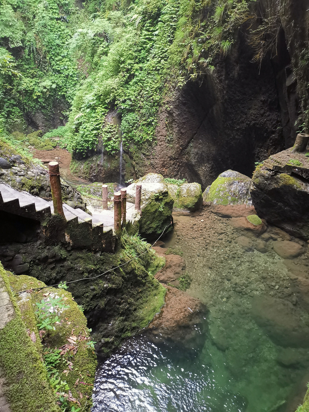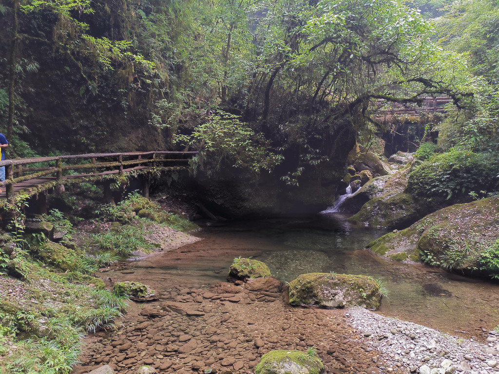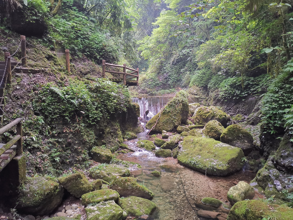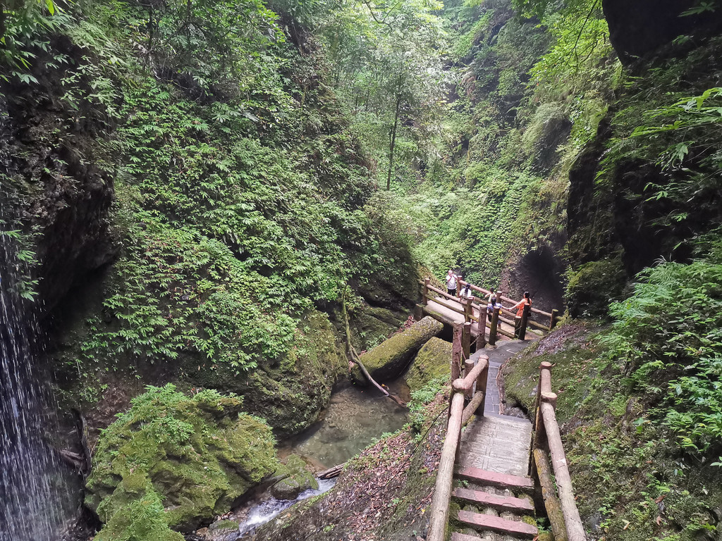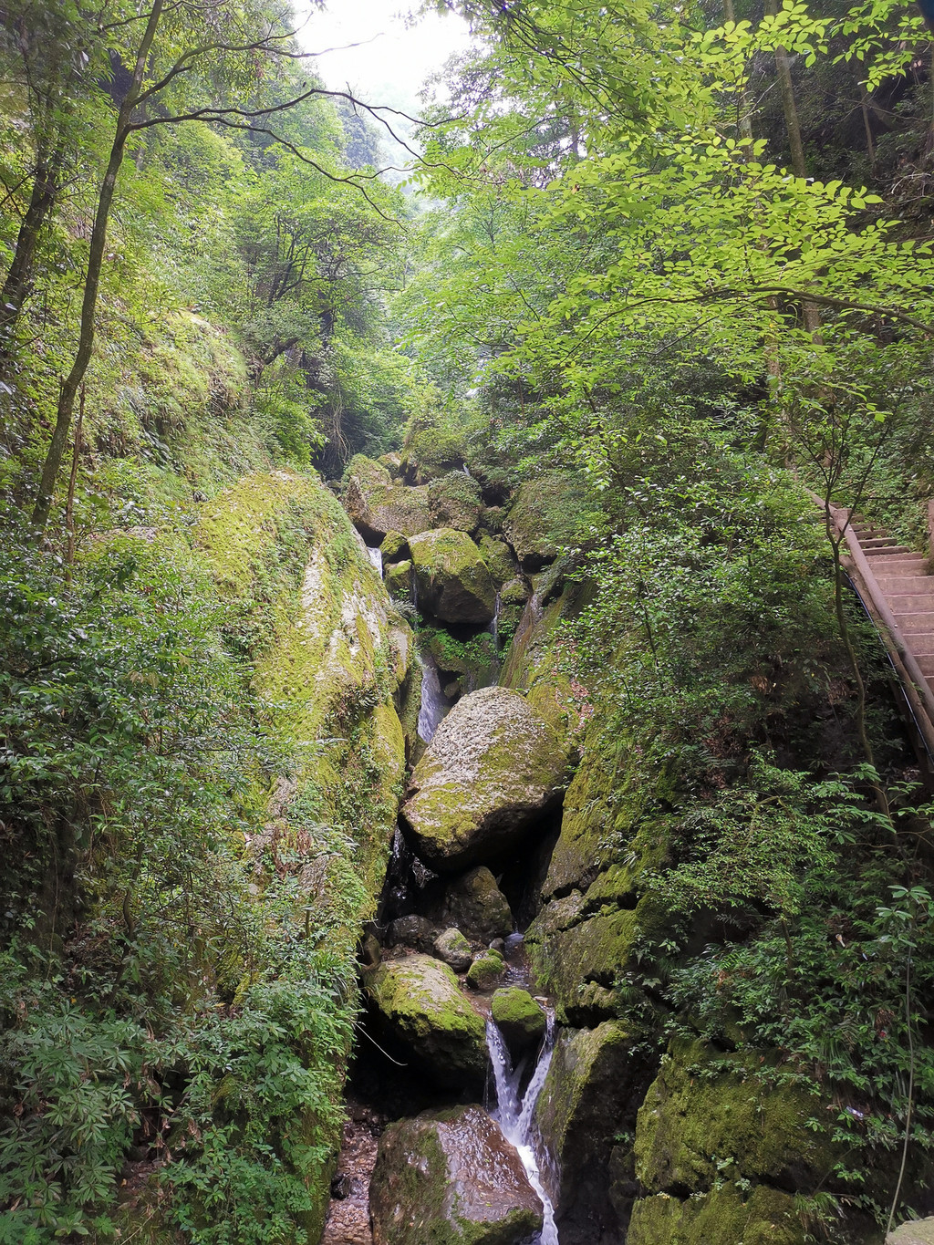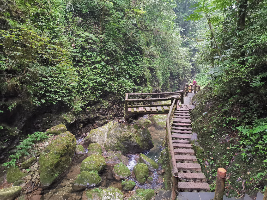 景区里大部分的道路都铺设有工整的水泥台阶,这里是少数比较粗糙的路面
