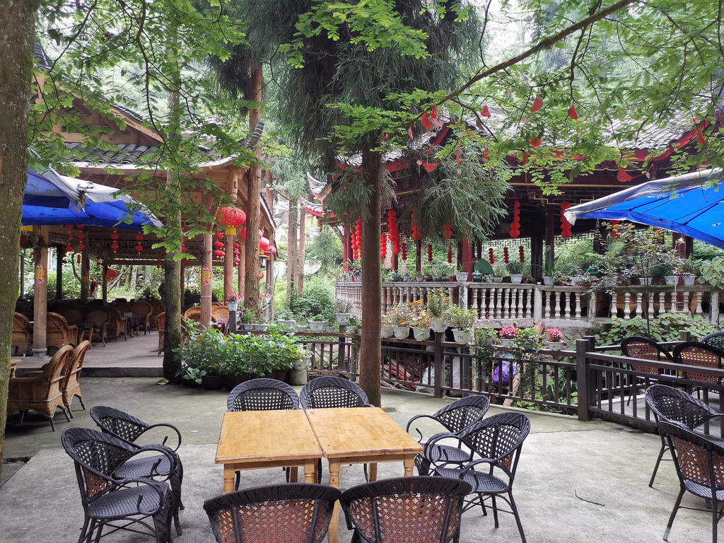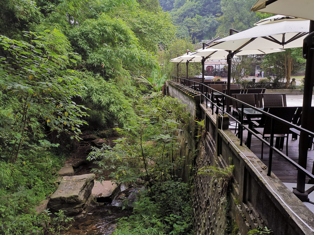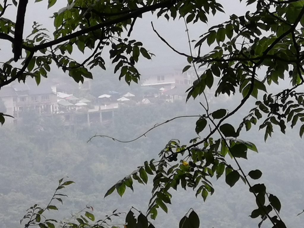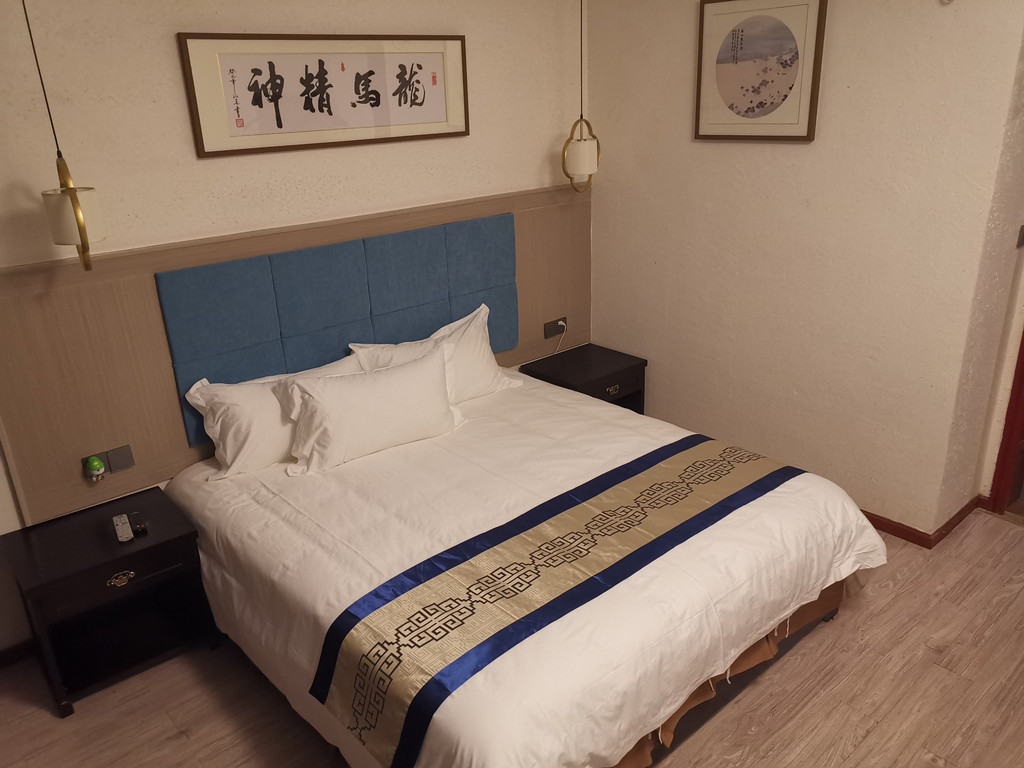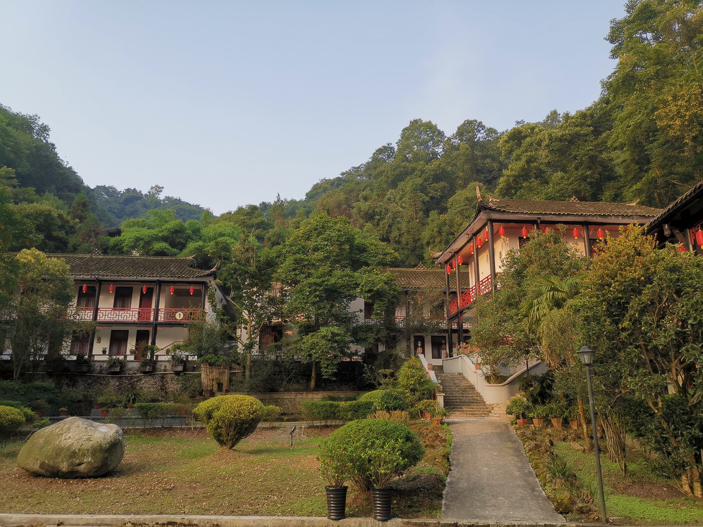 而后,步行2km至青城山前山门处的天谷酒店。经过一番口舌,由酒店管理人员上报当地民警,有北京疫区高危人来此地住店,最后还是同意了。豪华大床房打折¥100后¥154入住,含早餐