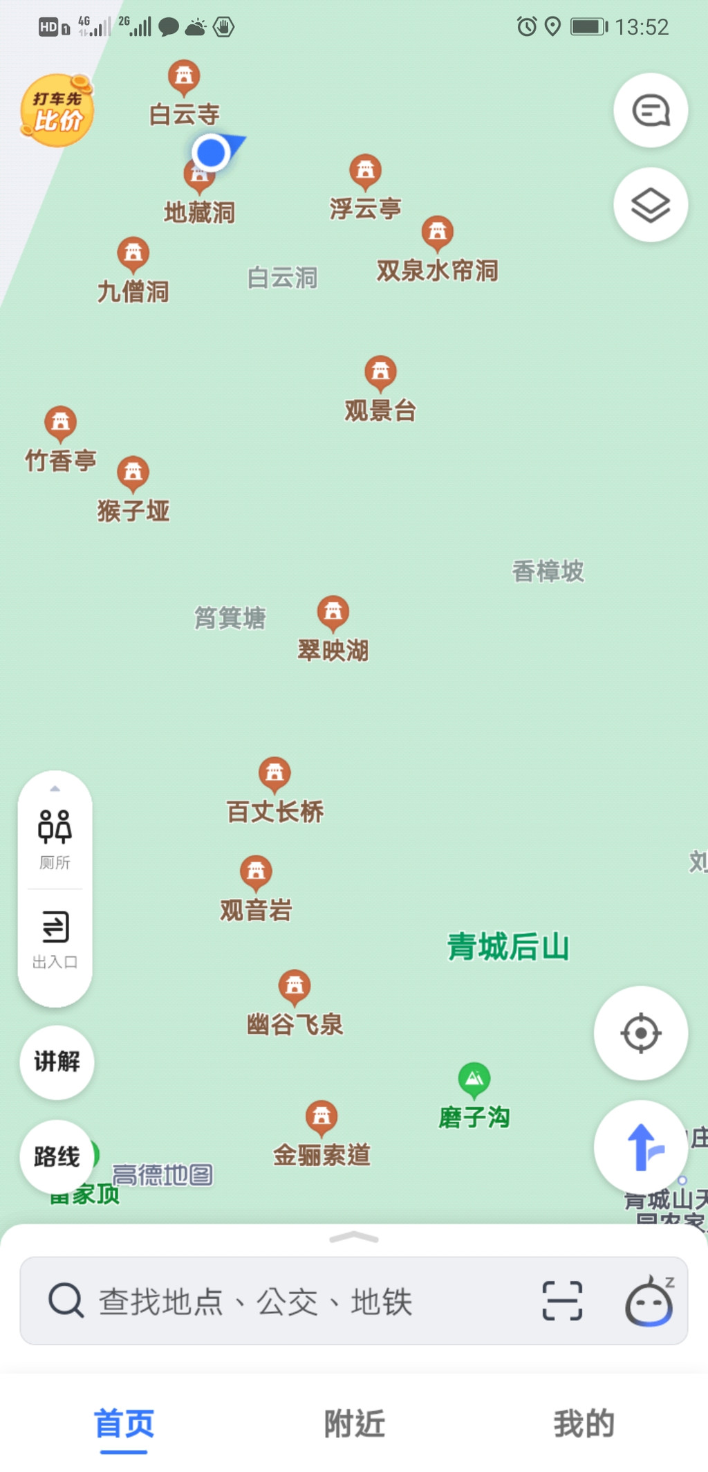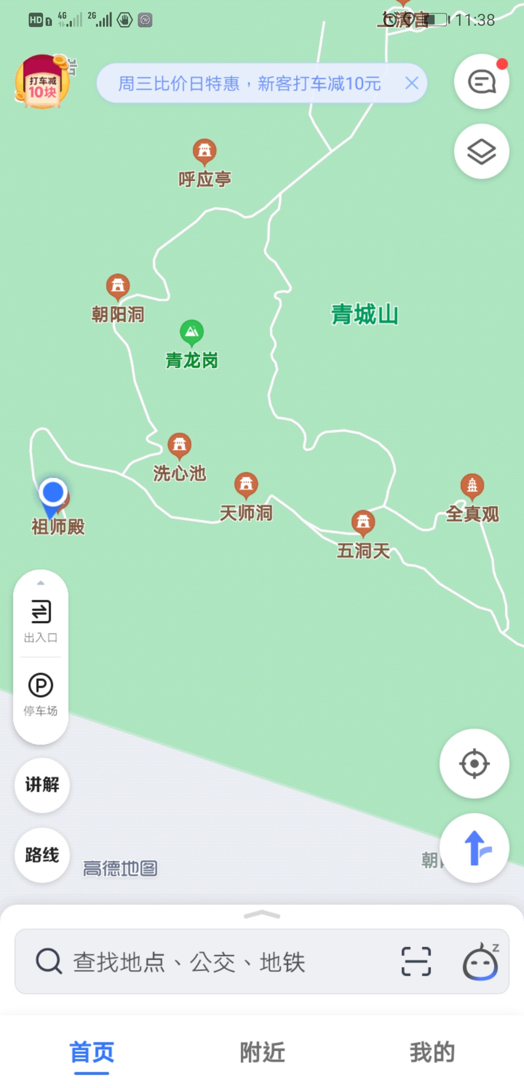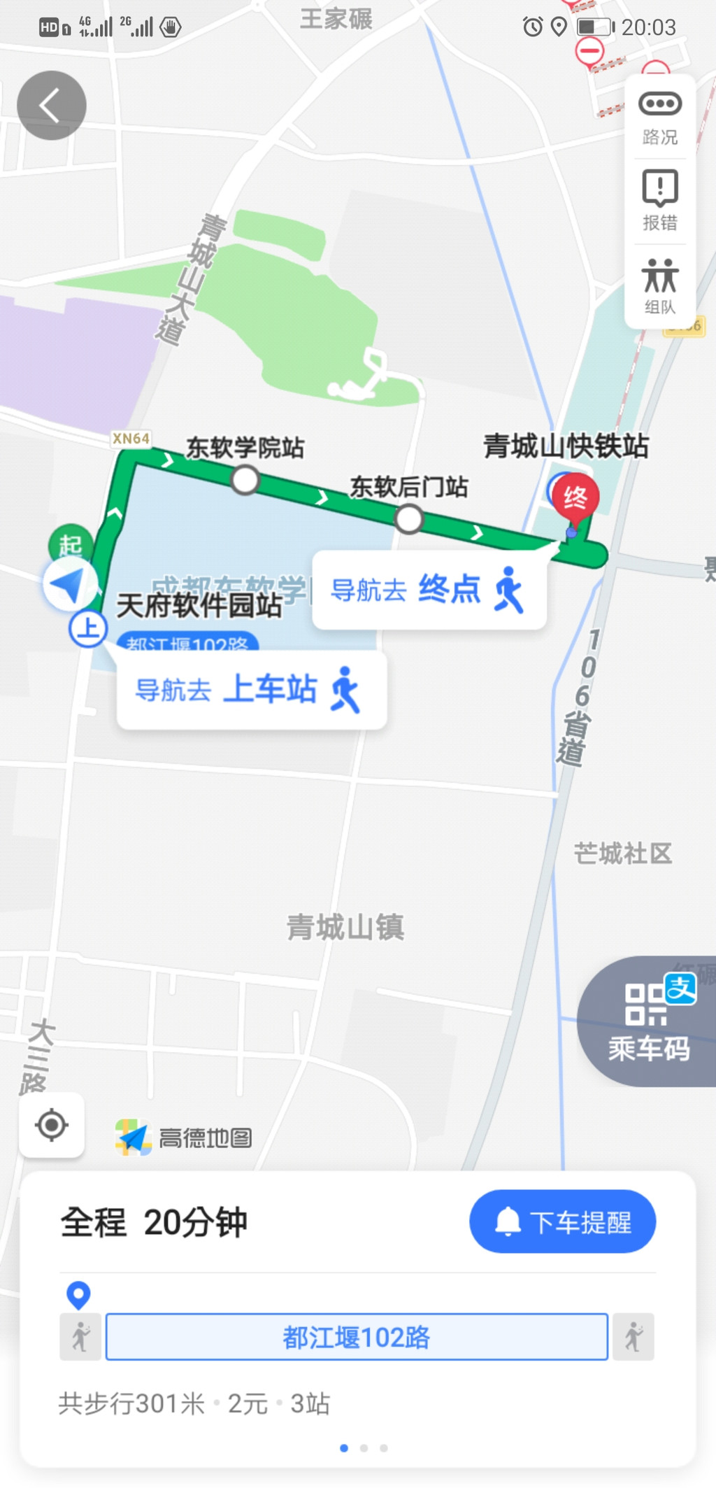 返回酒店,退房,乘101公交车3站地,到青城山快铁站