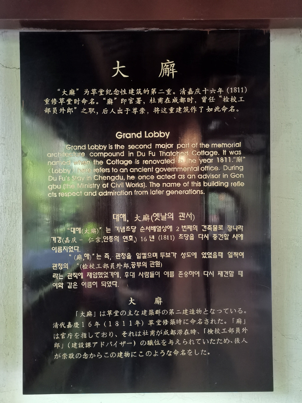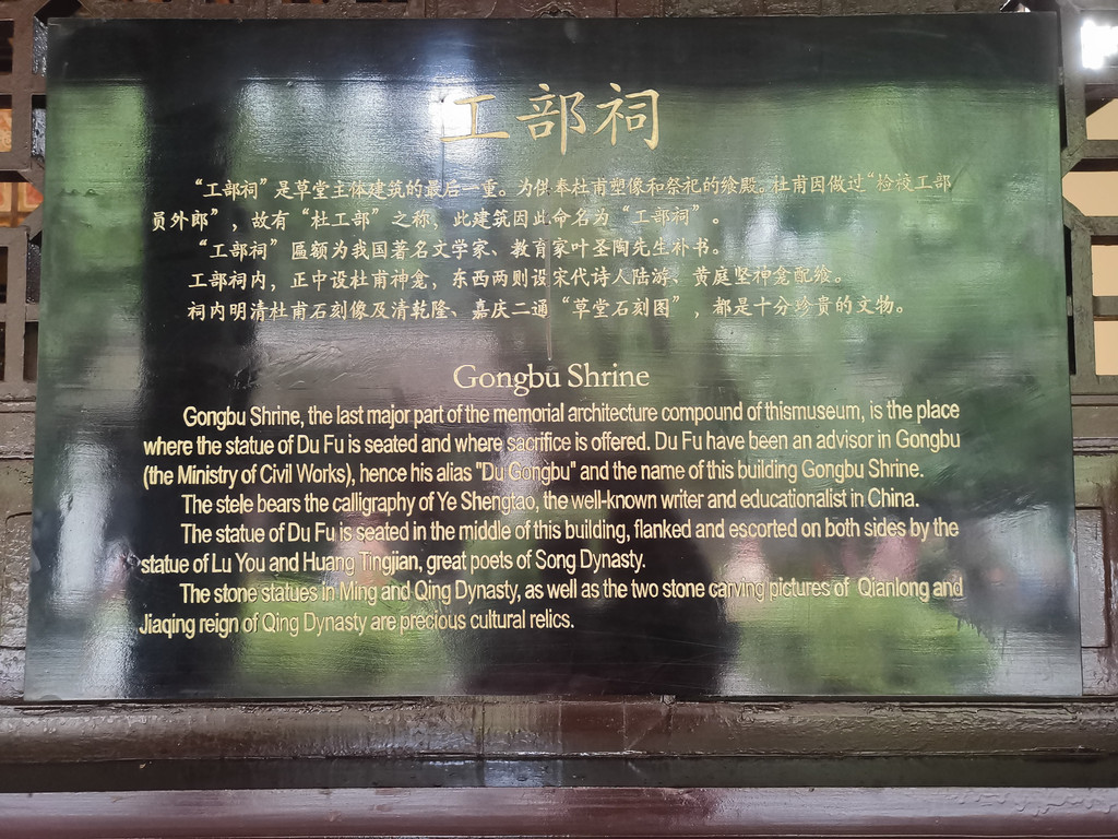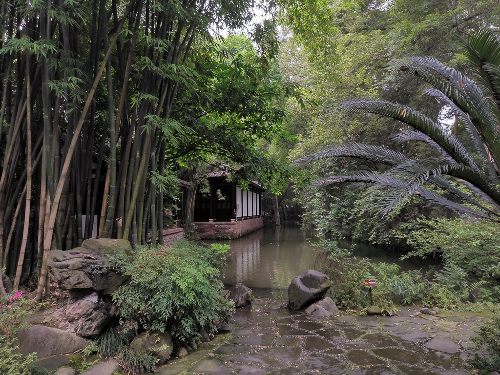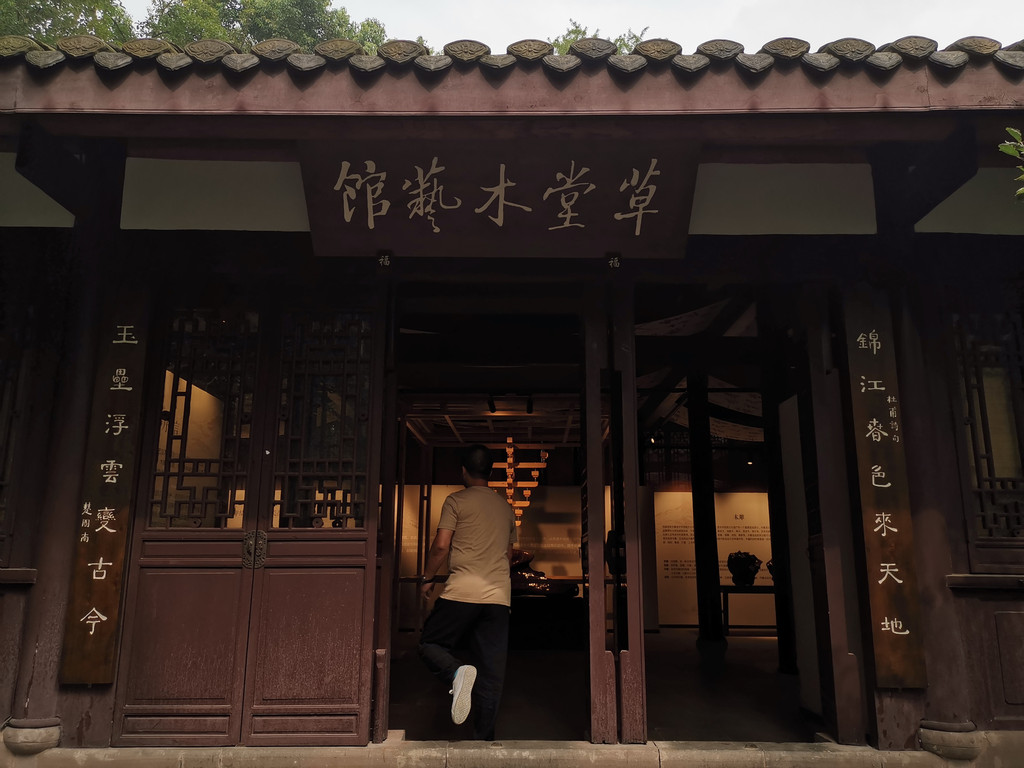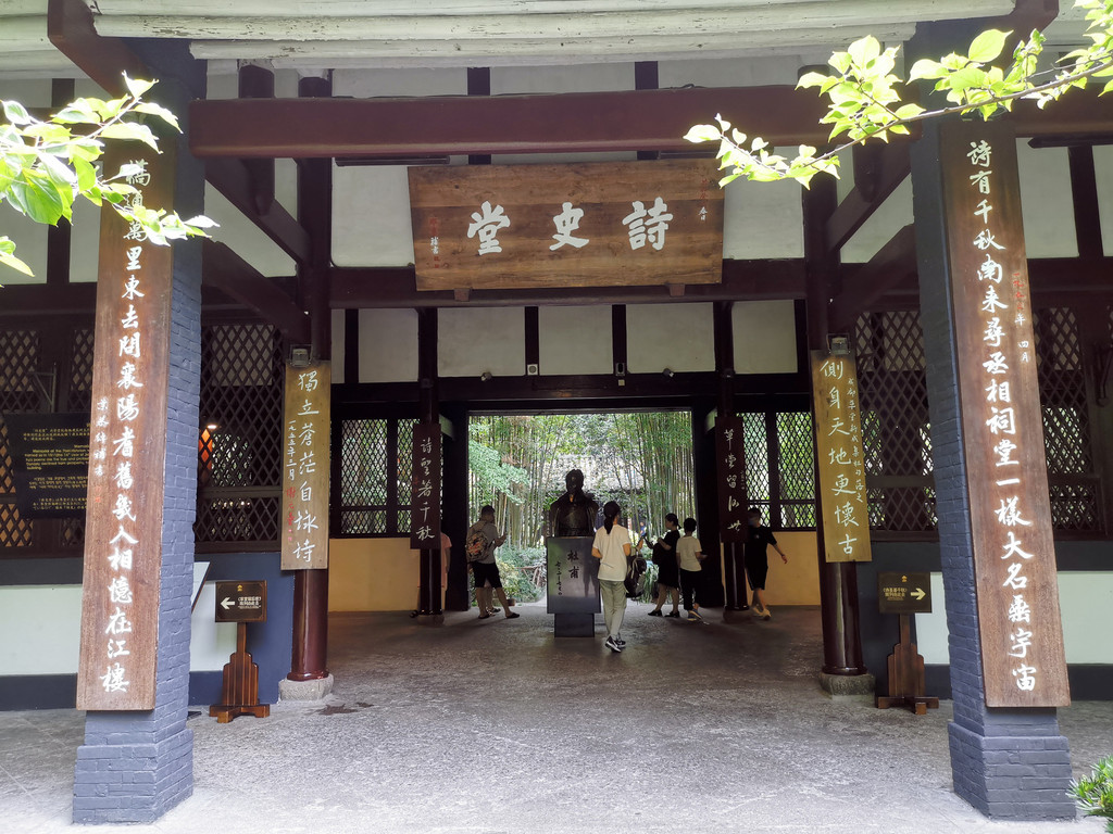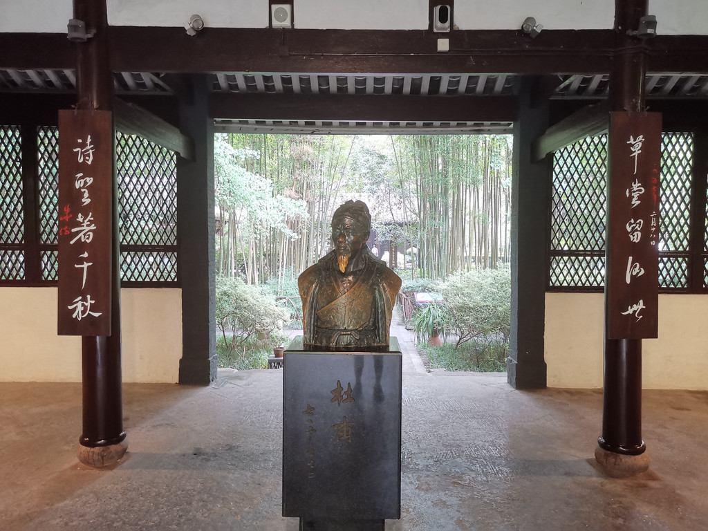 这草堂号称是诗圣的宅子,但后面看到唐代遗址的介绍,原来对此地是否是杜甫草堂还是有争议的。直到唐代遗的考古出土之后,才告一段落。所以,这草堂也是当代人想象出来的样子。