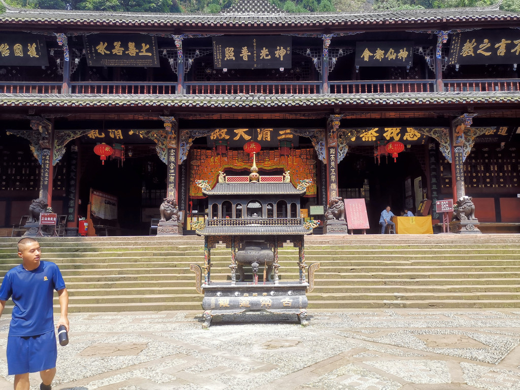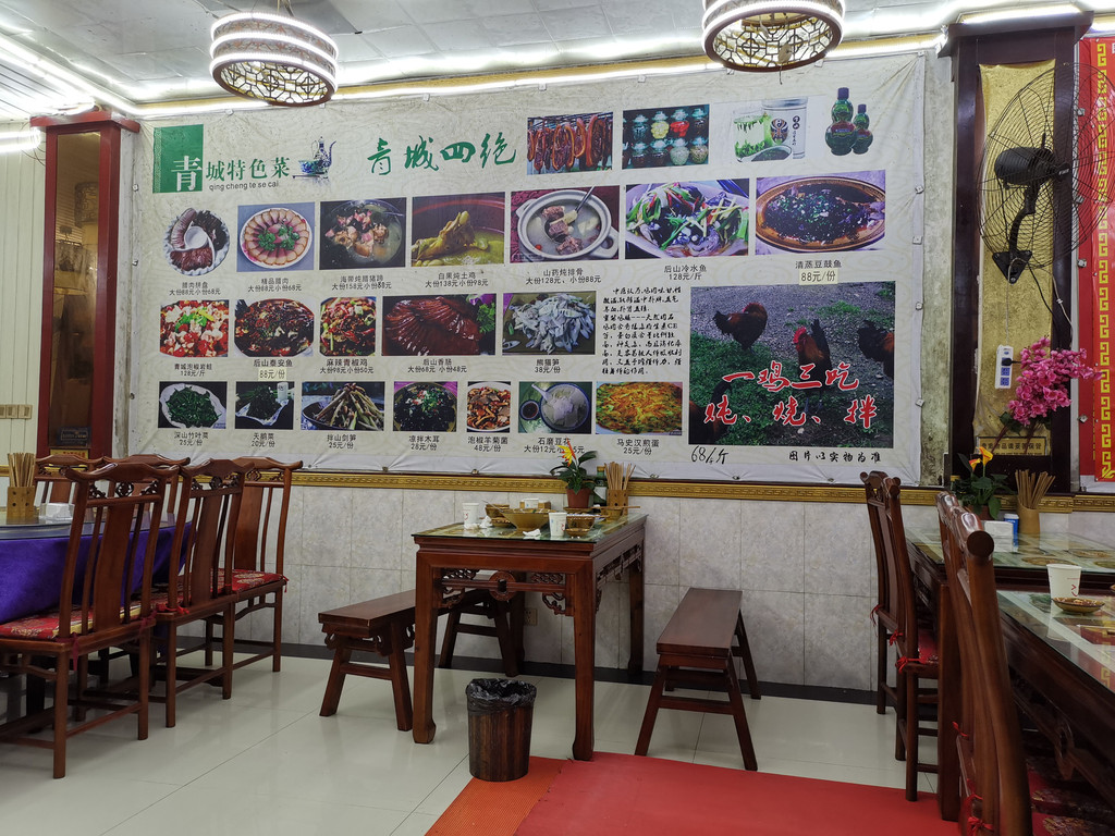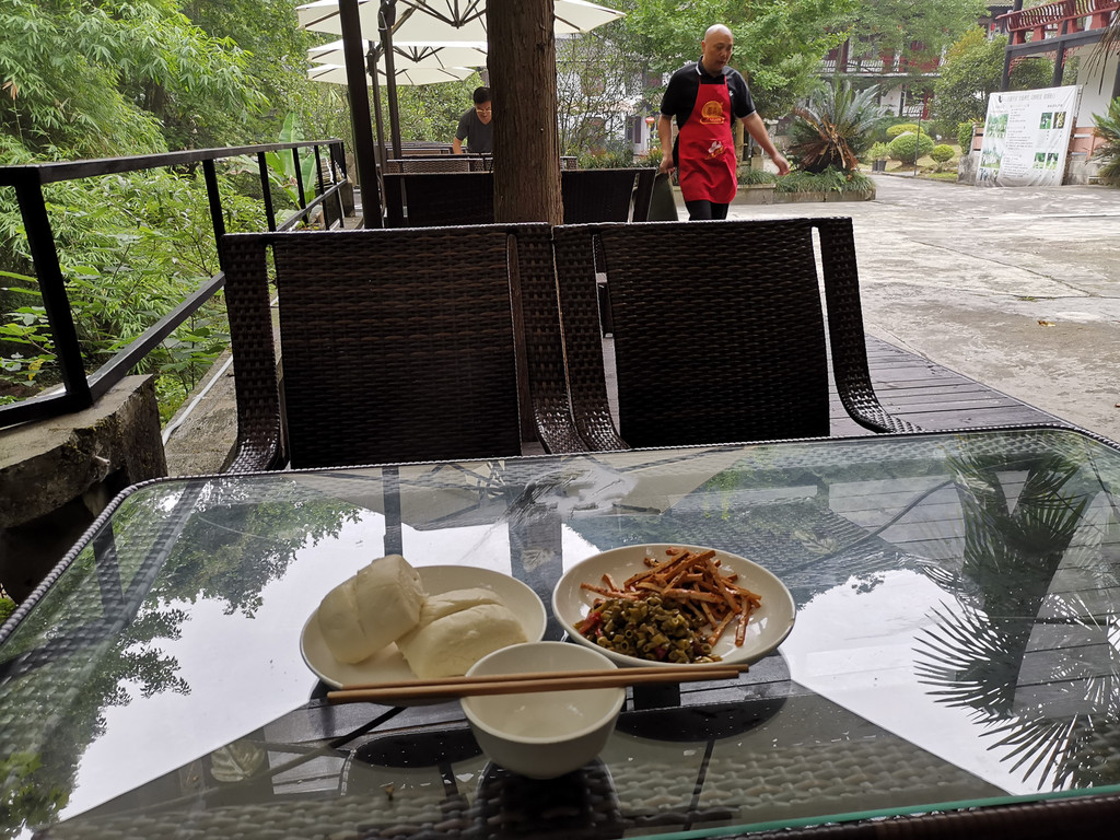 13:20山门。游览用时5h。13:26山门外《源青道》餐厅午餐,一盘大葱炒腊肉¥88,价格堪比北上广深了。