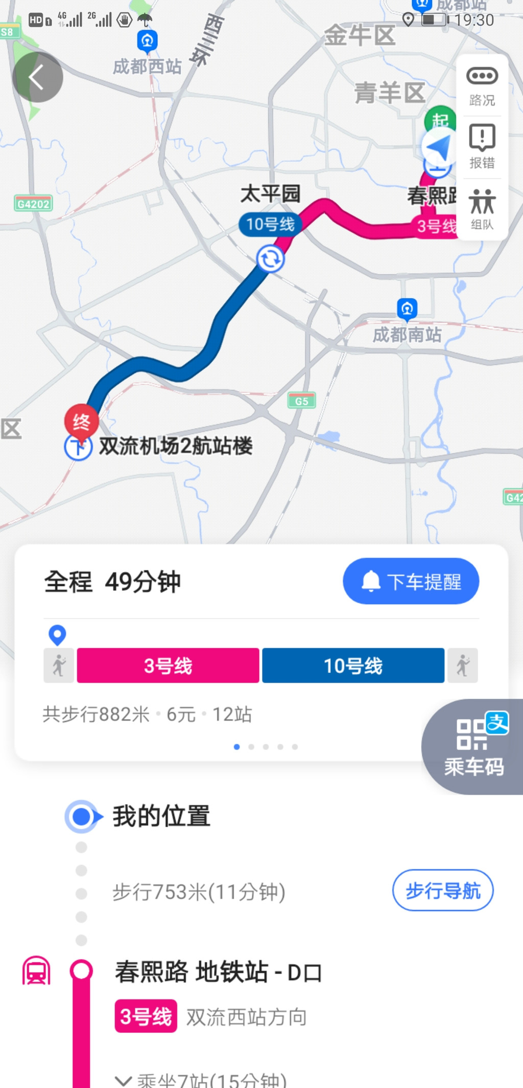 春熙路乘地铁#3,换#10,抵达双流机场T2航站楼。