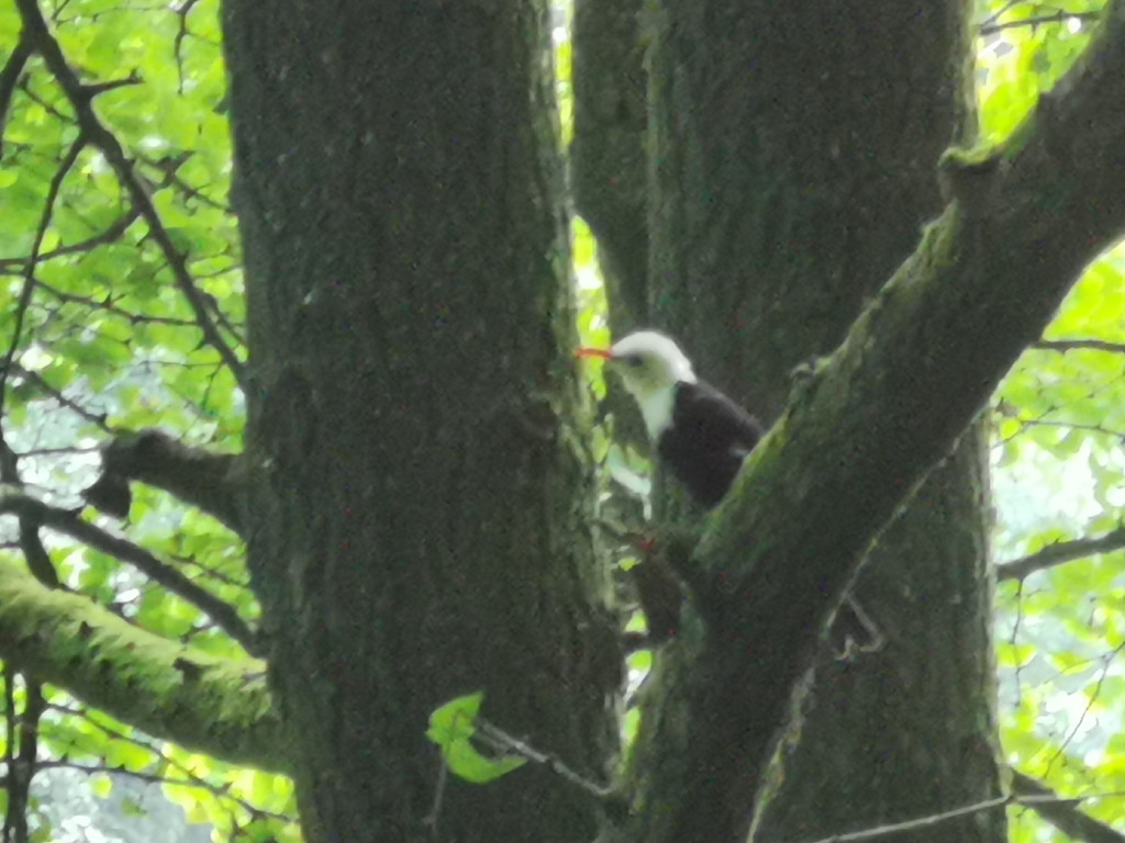 看见一对很漂亮的白头小鸟,不知叫什么品种,手机变焦拍得不清晰