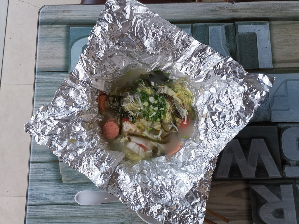 在碳香花甲米线店,吃了一碗¥14清汤肉丸米线。