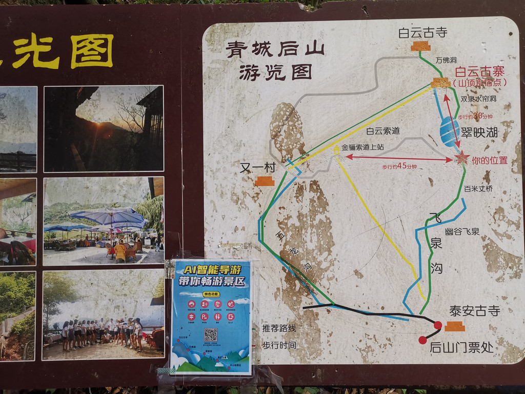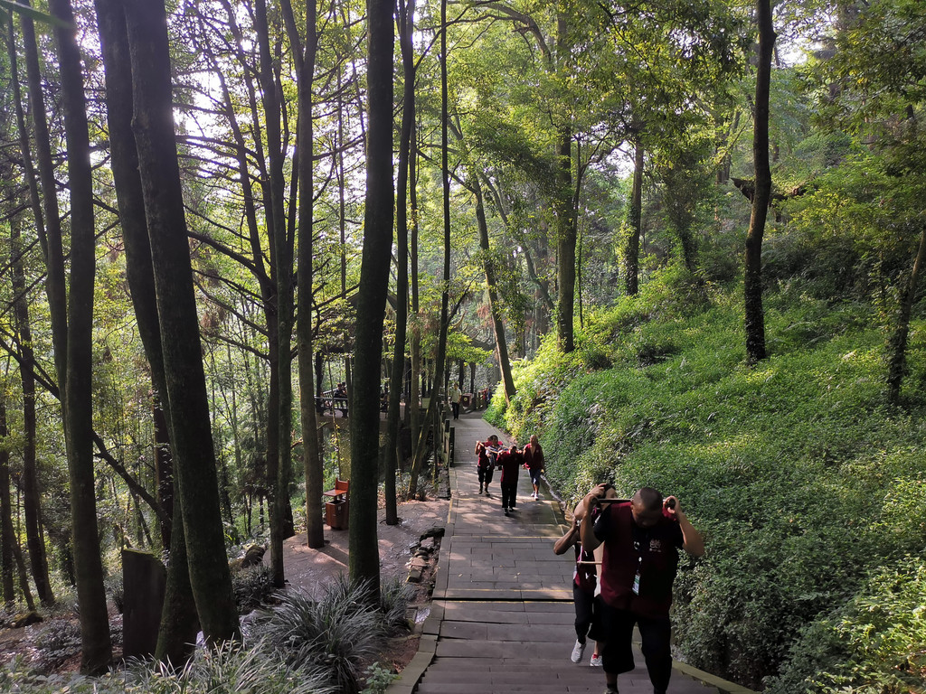 8:00用完早餐,步行行至101公交站,2元到青城山快铁站,