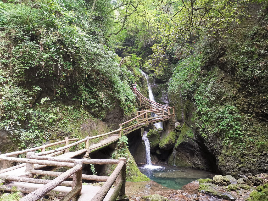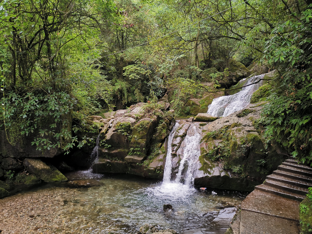《青城後山》拾階步步高,溪水潺潺流。為探通幽路,撥草穿林遊
