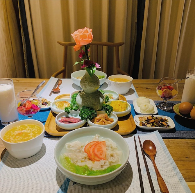 成都鹪鹩人文精品酒店 成都鹪鹩人文精品酒店早餐也特别温馨,入住的时候管家会询问用餐时间和口味爱好,很贴心,自己可以挑选中西餐,还搭配了水果、干果、各种糕点,而且是由管家送到房间来的哦!满满的都是爱。