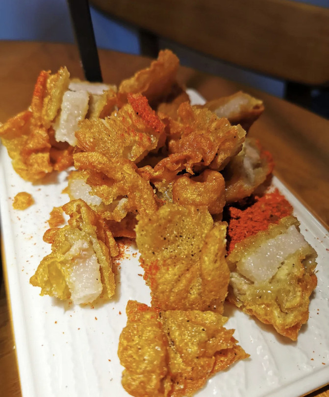 缘贡自贡菜·川菜馆(春熙路店)龙门 吊肉,这道菜有专门的小哥哥帮忙剪肉,放盘子里装好,脆脆的口感,外面的裹粉炸的很完美,吃多了也不会觉得腻,这也算是他们家的一个招牌菜品了,挺有特点的。