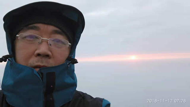 十二日早天未亮,我突然惊醒,一看表六时二十六分,起床,快速穿好带上山的所有衣服,只拿上登山杖迅速出了山庄,峨眉山的夜空星星闪烁,月亮不知躲到哪里去了,去金顶的路上就我一人,只有一家商铺刚刚摆摊,一问日出时间是七时二十分左右,我一看表才六点四十,还早,但此时也无其他事可做,就顺着台阶步履蹒跚向山顶观测台走去,因高原反应一路上又是不停的台阶,我气喘吁吁,双腿的肌肉又酸痛无比,爬台阶时三步一歇,五步一停,七时许才艰难挪到日出观测台。此时观测台上的游客寥寥无几,我寻么有个无人的石凳,就一屁股坐定,一步也不想动弹了。过了一会,从接引殿坐缆车上来游人分批到达观测台,其中有曾经在路途中相遇过的游人主动同我打着招呼,他们可能对一个独自登山的半大的老头印象深刻,我也礼貌的回礼,相互问候。